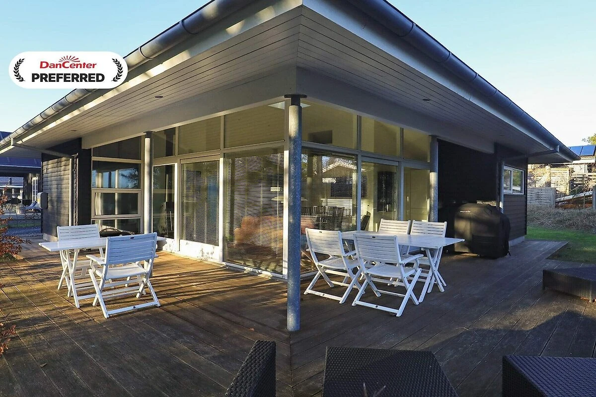 , offene Küche(Kochherd(elektrisch), Dunstabzugshaube, Kaffeemaschine, Mikrowelle, Spülmaschine, Kühl-/Gefrierkombination, Trockner, Waschmaschine), Wohn-/Schlafzimmer(TV(Kabel, Deutsch Fernsehsender, dänische Fernsehsender), CD-Spieler, Stereoanlage, Hochstuhl), Schlafzimmer(Doppelbett, Babybett), Schlafzimmer(Doppelbett), Badezimmer(Fußbodenheizung)(Badewanne oder Dusche, Waschbecken, Toilette), Whirlwanne(im Innenbereich, erwärmt), Heizung(elektrisch), Terrasse(35 m2), Terrasse(überdacht, 26 m2), Luft-Luft-Wärmepumpe