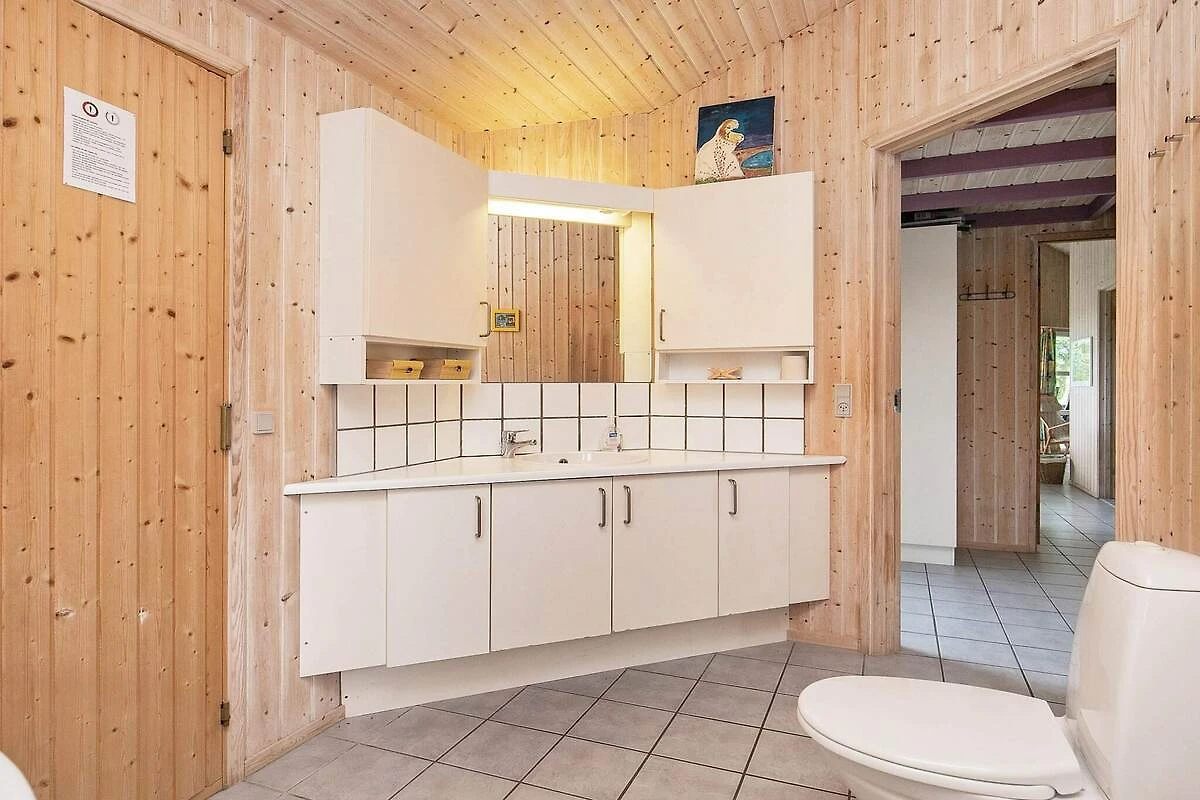 , offene Küche(Kochherd(elektrisch), Dunstabzugshaube, Kaffeemaschine, Mikrowelle, Spülmaschine, Kühlschrank, Tiefkühlschrank(60-99L)), Wohn-/Schlafzimmer(TV(Deutsch Fernsehsender, dänische Fernsehsender), DVD-Spieler, Radio, Hochstuhl), Schlafzimmer(Doppelbett, Babybett), Schlafzimmer(Doppelbett), Schlafzimmer(4x Etagenbett), Badezimmer(Fußbodenheizung)(Trockner, Badewanne oder Dusche, Waschbecken, Toilette, Waschmaschine), Badezimmer(Waschbecken, Toilette), Whirlwanne(im Innenbereich, 2 Personen), Sauna(im Innenbereich, erwärmt, 4 Personen), Heizung(elektrisch), Terrasse, Terrasse(überdacht), Grill