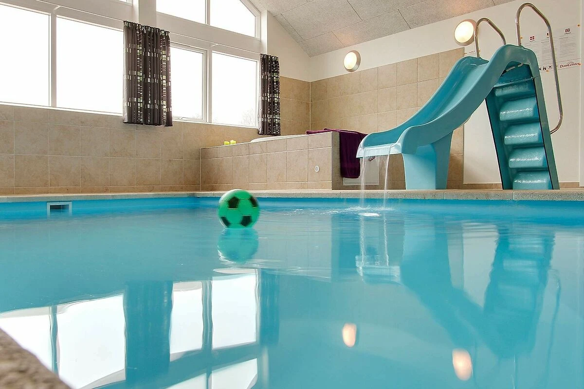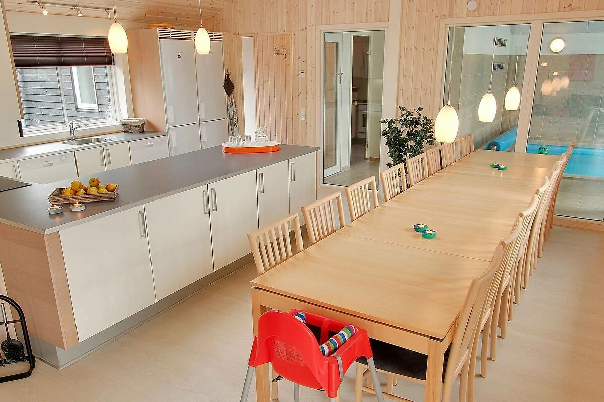 , Wohnzimmer(4x Einzelklappbett ), offene Küche(Kochherd(elektrisch), Dunstabzugshaube, Kaffeemaschine, Mikrowelle, Spülmaschine, Kühl-/Gefrierkombination, Trockner, Waschmaschine), Wohn-/Schlafzimmer(TV(Satellit, Deutsch Fernsehsender, dänische Fernsehsender), DVD-Spieler, CD-Spieler, Stereoanlage, Hochstuhl), Schlafzimmer(Doppelbett, Babybett), Schlafzimmer(Doppelbett), Schlafzimmer(Doppelbett), Schlafzimmer(Doppelbett), Schlafzimmer(Doppelbett), Schlafzimmer(Doppelbett), Schlafzimmer(Doppelbett), Badezimmer(Fußbodenheizung)(Badewanne oder Dusche, Waschbecken, Toilette), Badezimmer(Fußbodenheizung)(Badewanne oder Dusche, Waschbecken, Toilette), Badezimmer(Fußbodenheizung)(Badewanne oder Dusche, Waschbecken, Toilette), Whirlwanne(im Innenbereich, erwärmt), Sauna(im Innenbereich, erwärmt), Terrasse, Pool(im Innenbereich), Spielgeräte, Tischtennisplatte, Tischfußball, Billard
