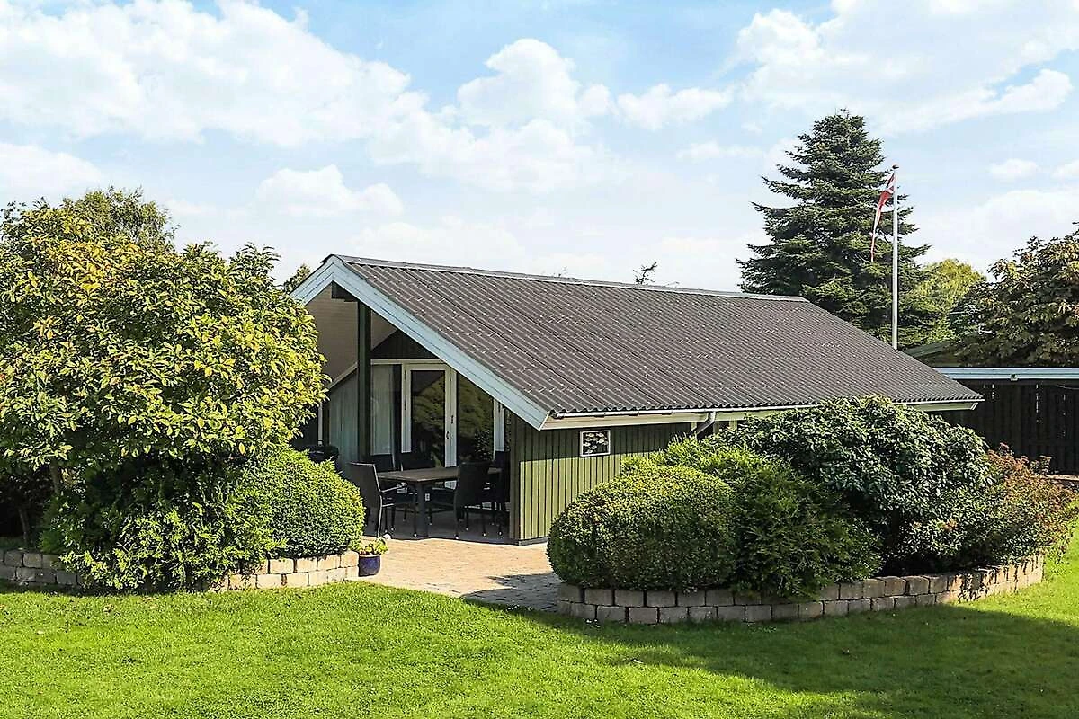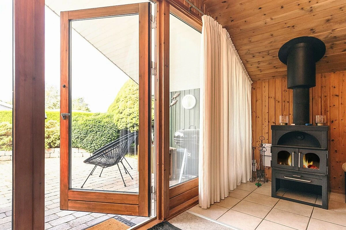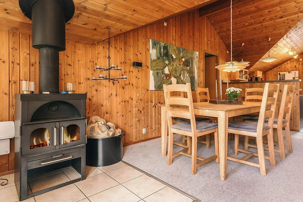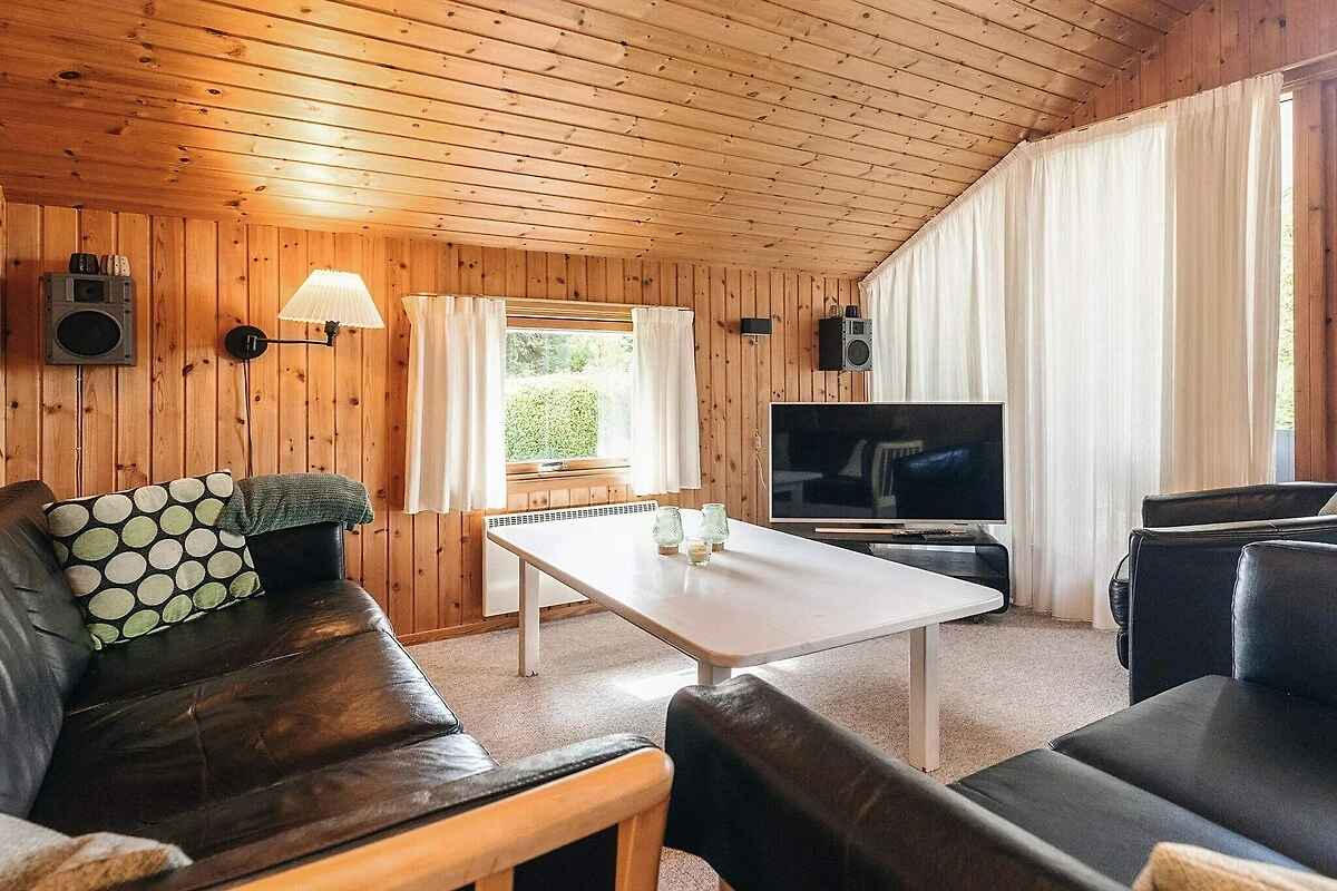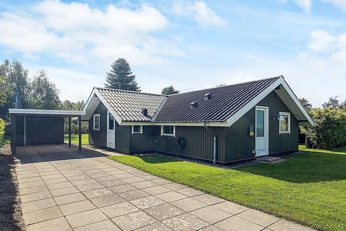 , offene Küche(Kochherd(elektrisch), Dunstabzugshaube, Kaffeemaschine, Mikrowelle, Spülmaschine, Kühlschrank(+ Gefrierfach), Tiefkühlschrank(1-59L), Trockner, Waschmaschine), Wohn-/Schlafzimmer(22 m2)(TV(Deutsch Fernsehsender, dänische Fernsehsender), Radio, Telefon), Schlafzimmer(Doppelbett), Schlafzimmer(2x Einzelbett), Schlafzimmer(2x Einzelbett), Badezimmer(Fußbodenheizung)(Badewanne oder Dusche, Waschbecken, Toilette), Carport, Sauna(im Innenbereich, erwärmt, 2 Personen), Heizung(elektrisch), Terrasse(überdacht), Gartenmöbel