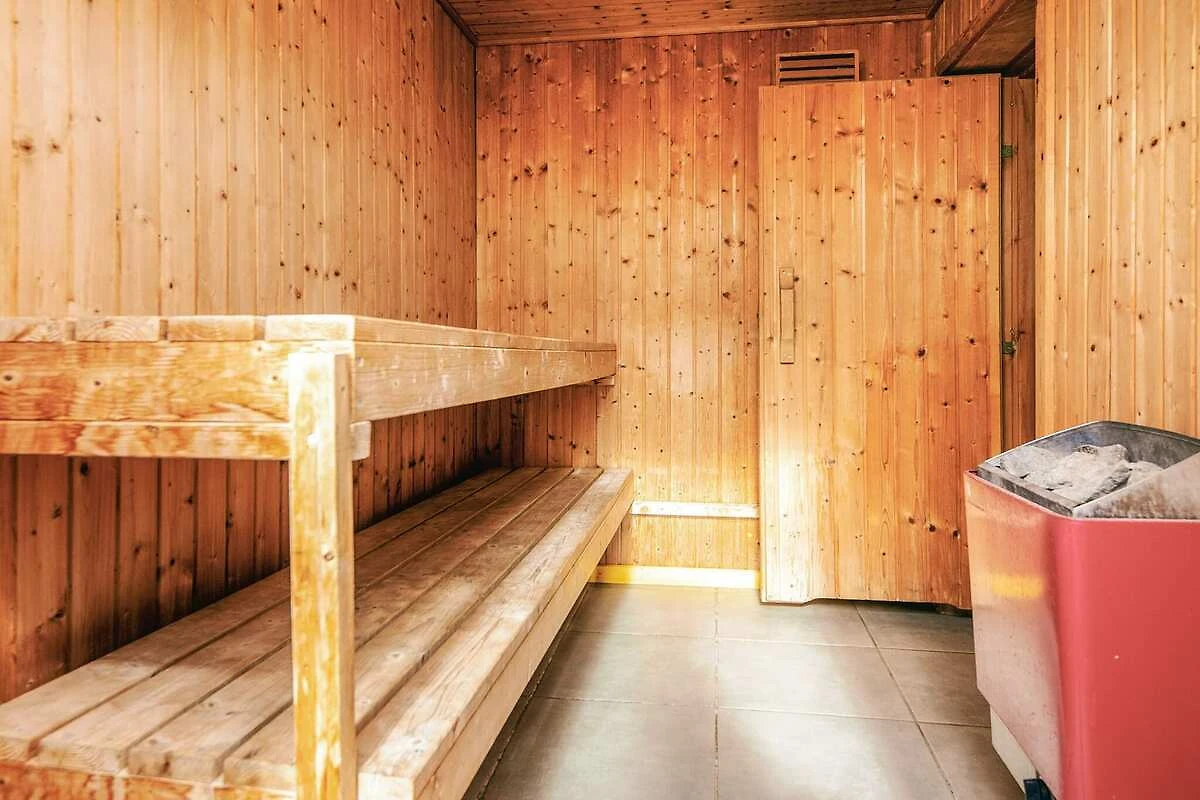 , offene Küche(Kochherd(elektrisch), Dunstabzugshaube, Kaffeemaschine, Mikrowelle, Spülmaschine, Tiefkühlschrank(60-99L), Kühl-/Gefrierkombination), Wohn-/Schlafzimmer(TV(Satellit, Deutsch Fernsehsender), Hochstuhl), Schlafzimmer(Doppelbett, Babybett), Schlafzimmer(Doppelbett), Schlafzimmer(Doppelbett), Schlafzimmer(Doppelbett), Schlafzimmer(Doppelbett), Schlafzimmer(Doppelbett), Badezimmer(Trockner, Badewanne oder Dusche, Waschbecken, Toilette, Waschmaschine), Badezimmer(Badewanne oder Dusche, Waschbecken, Toilette), Sauna(im Innenbereich, erwärmt, 5 Personen), Terrasse, Garten, Grill