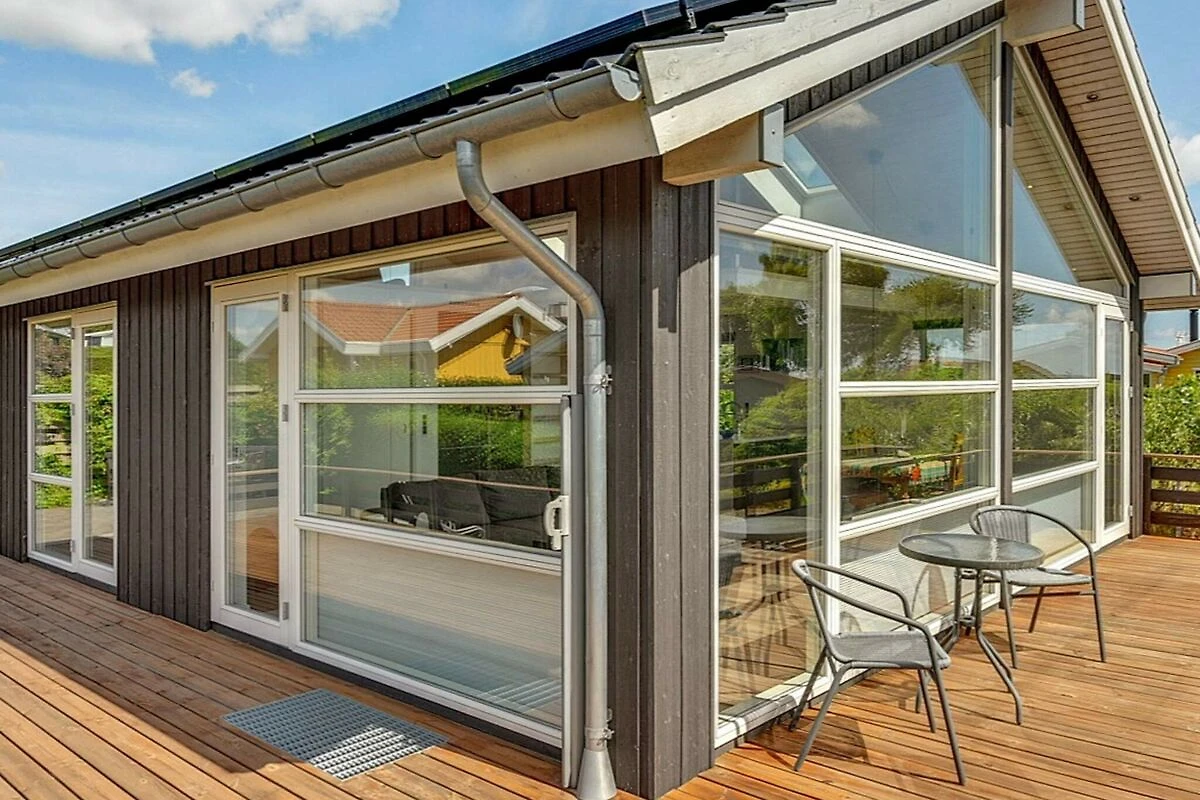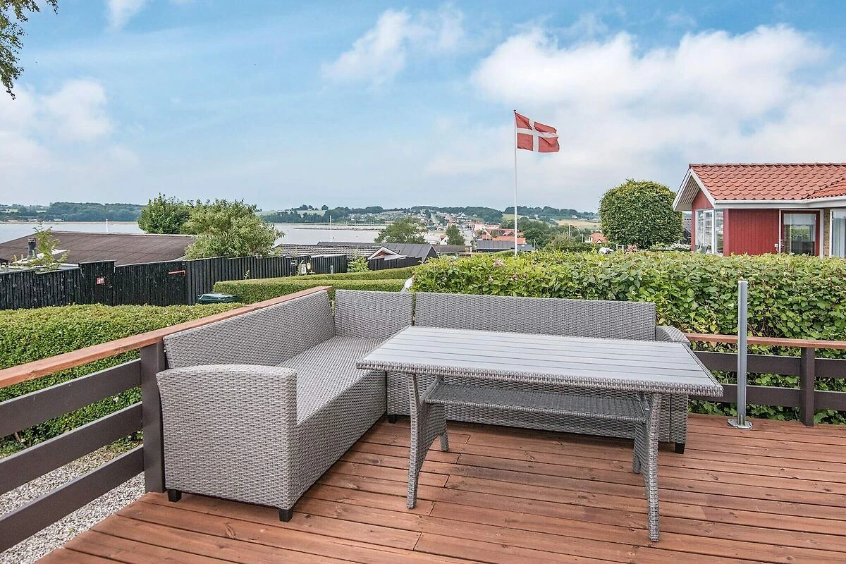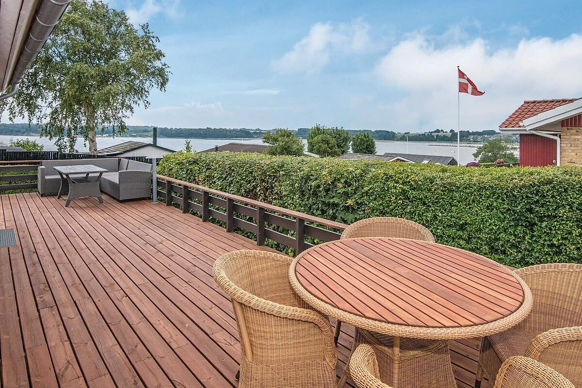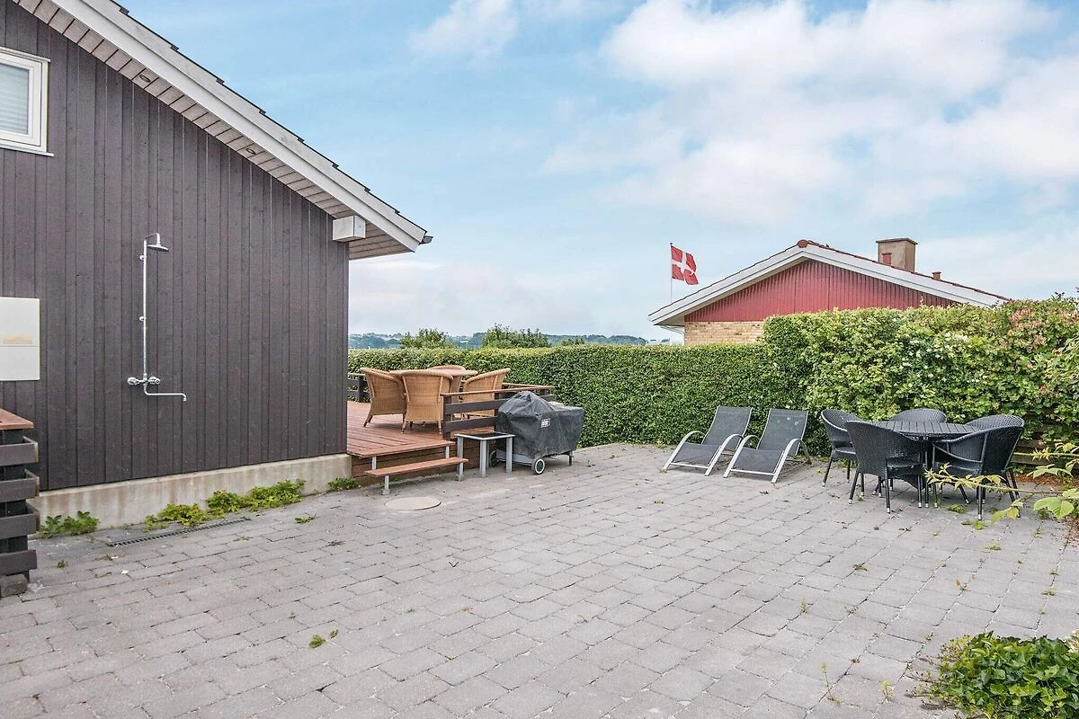 Dieses Ferienhaus liegt leicht erhöht auf einem besonders attraktiven Grundstück, nur etwa 90 m von der Küste bei Hejlsminde. Es bietet sowohl vom Innenbereich als auch von den großen Terrassenflächen herrliche Aussicht in die Umgebung und bis zum Wasser. Das Ferienhaus ist modern eingerichtet und durch die vielen, teils bodentiefen Fenster und einigen Oberlichtern lichtdurchflutet. Es stehen im Erdgeschoss etwa 69 m2 Wohnfläche zur Verfügung, zudem gibt es im Untergeschoss einen ca. 40 m2 großen Aktivitätsraum. Dort finden Sie viel Platz für Spiel und Spaß am Tischkicker oder vor der Spielekonsole, ohne dabei kalte Füße zu bekommen, denn es gibt hier eine angenehme Fußbodenheizung. Der helle Küchen-/Wohnbereich mit Essecke ist stilvoll eingerichtet und bietet von fast überall Meerblick. Im Elternschlafzimmer befindet sich ein Doppelbett sowie ein Einbauschrank mit Schiebetür. Von hier hat man auch Zugang zur Terrassenfläche. Im zweiten Schlafzimmer steht ein Etagenbetten mit 190 cm Länge bereit. Zudem hat das Haus oben unter dem Dach einen offenen Hems mit besonders schönem Ausblick. Genießen Sie die Sonnentage auf den insgesamt 120 m2 großen Terrassenflächen im Außenbereich, inklusive einer geschützten, gefliesten Fläche hinter dem Haus. Von beiden, etwa 40 m2 großen Holzterrassen genießt man Ausblick zur Küste. Außerdem steht eine praktische Außendusche zur Abkühlung an heißen Sommertagen bereit (nur im Sommer verfügbar). Keine Vermietung an Jugendgruppen erwünscht!Kurz vor Ihrem Ankunftsdatum kann eine rückzahlbare Kaution erhoben werden. Die Kaution stellt sicher, dass Ihr Aufenthalt reibungslos verläuft, und deckt eventuelle Zusatzleistungen oder Verbrauchskosten ab.Diese Kaution deckt den Verbrauch von Nebenkosten während Ihres Aufenthalts sowie zusätzliche in Anspruch genommene Leistungen ab.Der endgültige Betrag wird anhand der tatsächlichen Zählerstände und Nutzung zusätzlicher Services angepasst. Ein etwaiger Restbetrag wird Ihnen innerhalb von 21 Tagen nach dem Check-out zurückerstattet.Die Kaution dient lediglich als Vorauszahlung für Leistungen, die Sie ohnehin bezahlen würden, und ermöglicht einen reibungslosen Ablauf Ihres Aufenthalts und Check-outs.