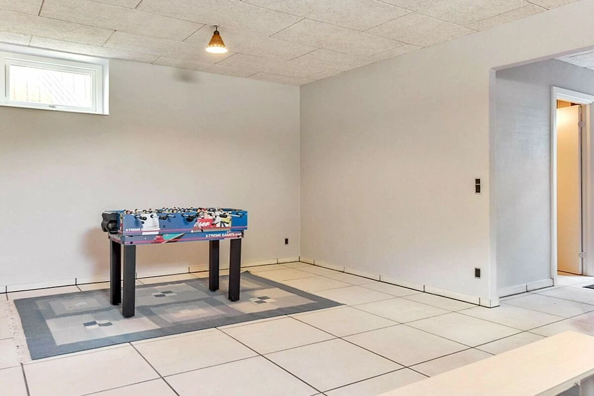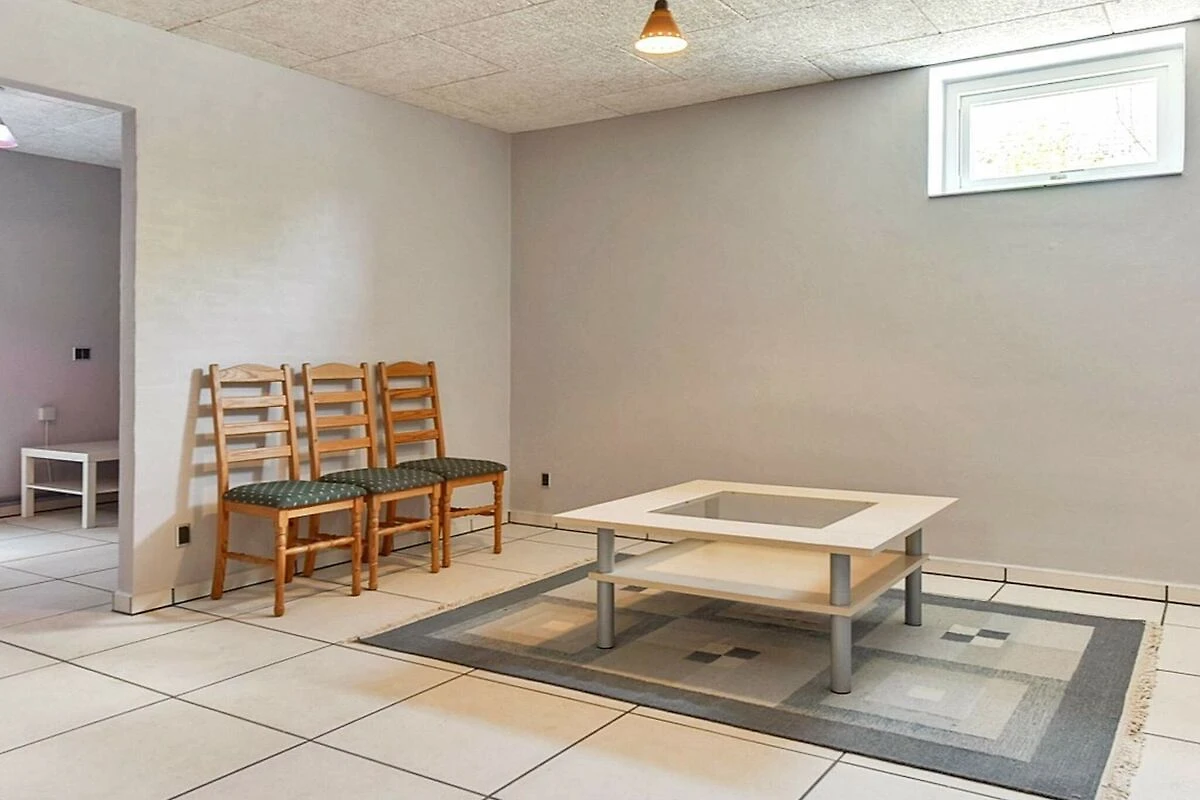 Offene Küche(Kochherd(elektrisch), Dunstabzugshaube, Kaffeemaschine, Mikrowelle, Spülmaschine, Kühlschrank(+ Gefrierfach)), Wohn-/Schlafzimmer(Doppelklappbett , TV(Deutsch Fernsehsender, dänische Fernsehsender), Hochstuhl), Schlafzimmer(Doppelbett), Schlafzimmer(2x Etagenbett), Badezimmer(Badewanne oder Dusche, Waschbecken, Toilette), Spielkonsole, Heizung(elektrisch), Terrasse, Garten, Grill, Tischfußball, Luft-Luft-Wärmepumpe