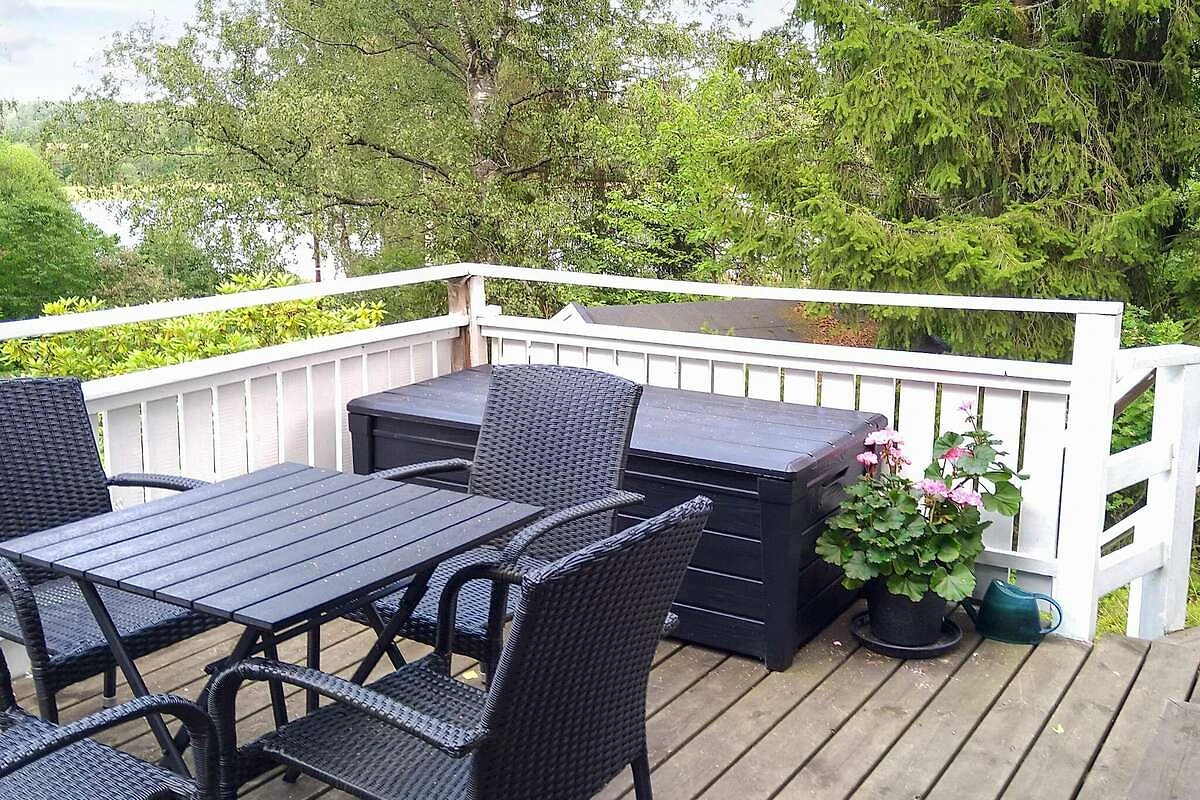 , Vorratsraum(Kochherd(2 Kochplatten), Kaffeemaschine, Mikrowelle, Kühlschrank(+ Gefrierfach)), Wohn-/Schlafzimmer(Doppelklappbett , Kaminofen), Schlafzimmer(Doppelbett, TV(Deutsch Fernsehsender, schwedische Fernsehsender)), Badezimmer(Waschbecken, Dusche, Toilette, Waschmaschine), Heizung(elektrisch), Terrasse, Gartenmöbel, Grill