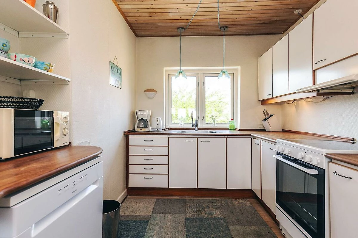 , offene Küche(Kochherd(elektrisch), Dunstabzugshaube, Kaffeemaschine, Mikrowelle, Spülmaschine, Kühlschrank(+ Gefrierfach), Trockner, Waschmaschine), Wohn-/Schlafzimmer(TV(Deutsch Fernsehsender, dänische Fernsehsender), DVD-Spieler), Schlafzimmer(Doppelbett, Babybett), Schlafzimmer(Doppelbett), Schlafzimmer(Doppelbett), Schlafzimmer(Doppelbett), Badezimmer(Badewanne, Waschbecken, Toilette), Badezimmer(Badewanne oder Dusche, Waschbecken, Toilette), Whirlwanne(im Innenbereich, erwärmt, 4 Personen), Terrasse, Garten, Grill, Tischfußball