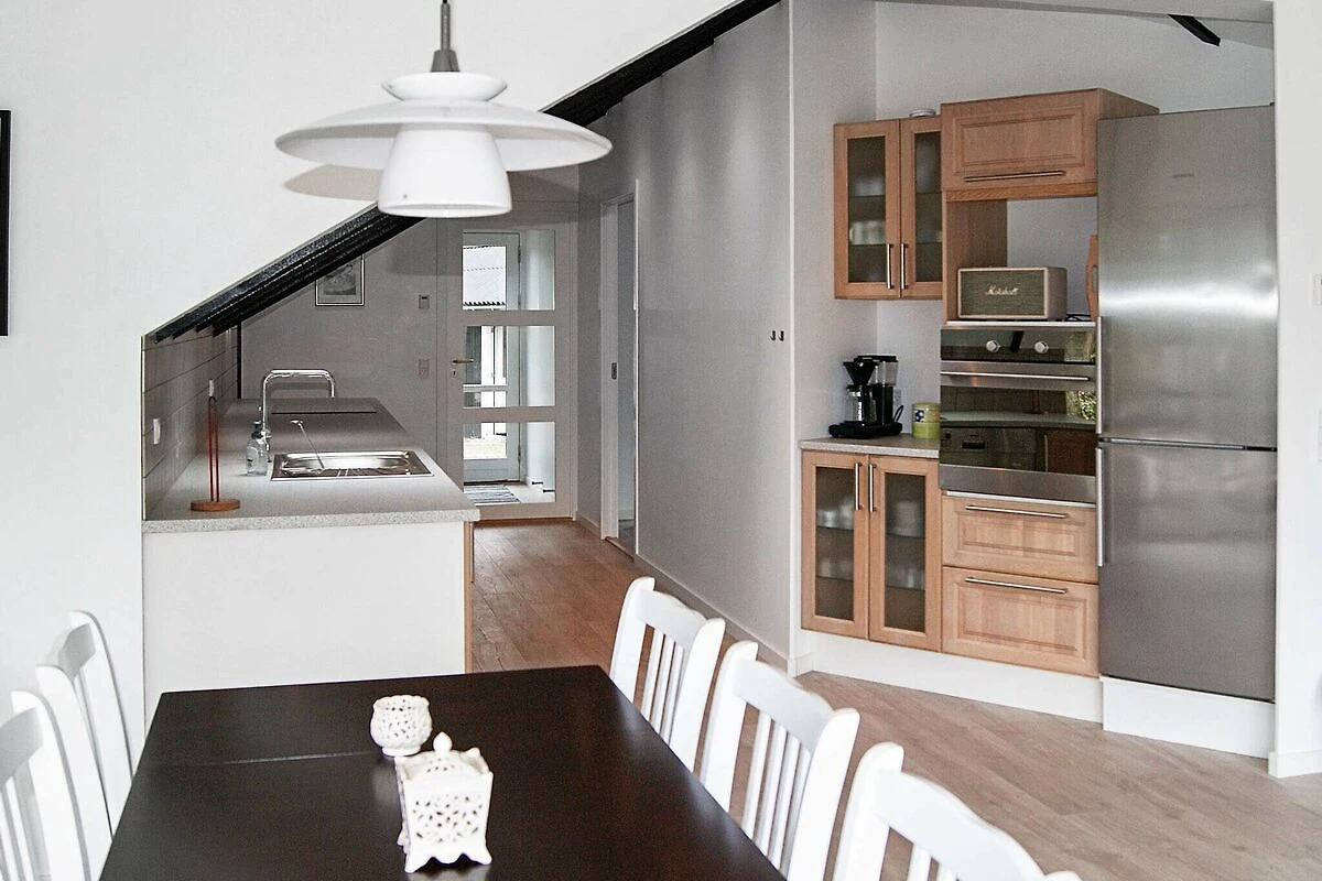 , offene Küche(Kochherd(elektrisch), Dunstabzugshaube, Kaffeemaschine, Spülmaschine, Kühlschrank, Kühl-/Gefrierkombination, Trockner, Waschmaschine), Wohn-/Schlafzimmer(TV(Deutsch Fernsehsender, dänische Fernsehsender)), Schlafzimmer(Doppelbett), Schlafzimmer(2x Einzelbett), Schlafzimmer(2x Einzelbett), Badezimmer(Fußbodenheizung)(Badewanne oder Dusche, Waschbecken, Toilette), Badezimmer(Fußbodenheizung)(Badewanne oder Dusche, Waschbecken, Toilette), Whirlwanne(im Innenbereich), Heizung(elektrisch), Terrasse, Grill, Luft-Luft-Wärmepumpe , Luft-Wasser-Wärmepumpe