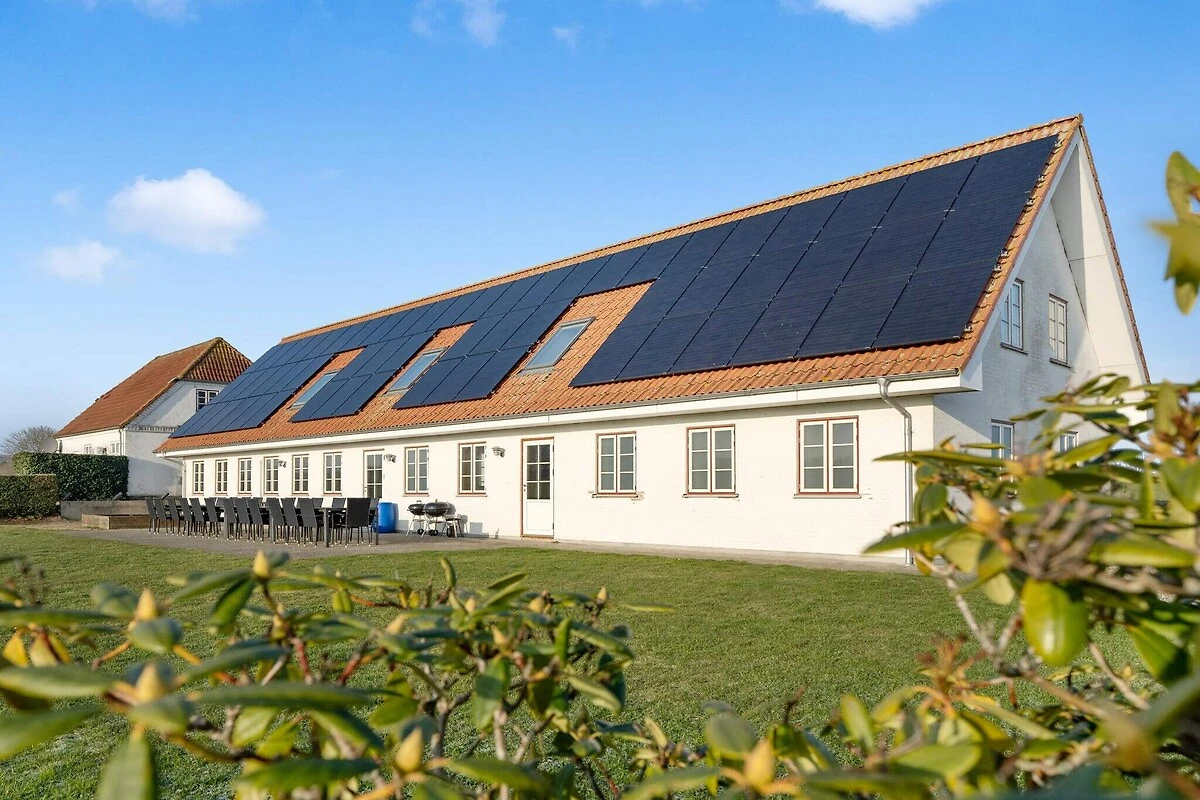 Dieses gut ausgestattete Ferienhaus in ländlicher und landschaftlich reizvoller Umgebung bietet Entspannung und Aktivitäten für Jung und Alt. Das Ferienhaus ist in zwei Gebäude unterteilt: Das erste Gebäude verfügt über eine Eingangshalle im Erdgeschoss mit Platz für Mäntel und Schuhe, eine Küche mit Essbereich, drei Schlafzimmer mit guten Matratzen und ein Badezimmer mit Dusche. Hier befindet sich auch der Poolraum des Hauses mit Pool und Spa, in dem Sie viele vergnügliche Stunden verbringen können. In der ersten Etage befinden sich vier Schlafzimmer, ein großes Wohnzimmer und ein Badezimmer mit Badewanne (die Whirlpoolfunktion funktioniert nicht). Im 1. Stock gibt es ein großes Badezimmer mit Badewanne (die Whirlpoolfunktion funktioniert) und Zugang zur Haussauna. Gebäude 2 (der Anbau) hat eine Eingangshalle im Erdgeschoss, einen älteren Aktivitätsraum mit Billardtisch, Darts und einer Fernsehecke, eine Küche mit Essecke (sehr wenig Geschirr), ein Badezimmer mit Dusche und einen kleinen Hauswirtschaftsraum mit Waschmaschine und Wäschetrockner. Im ersten Stock des Nebengebäudes befinden sich zwei geräumige Schlafzimmer und ein Badezimmer mit Dusche. Das Haus liegt in einer ungestörten, landschaftlich reizvollen Umgebung in der Nähe von Himmark Strand. Insgesamt gibt es 9 Schlafzimmer und 4 Badezimmer im Haus.