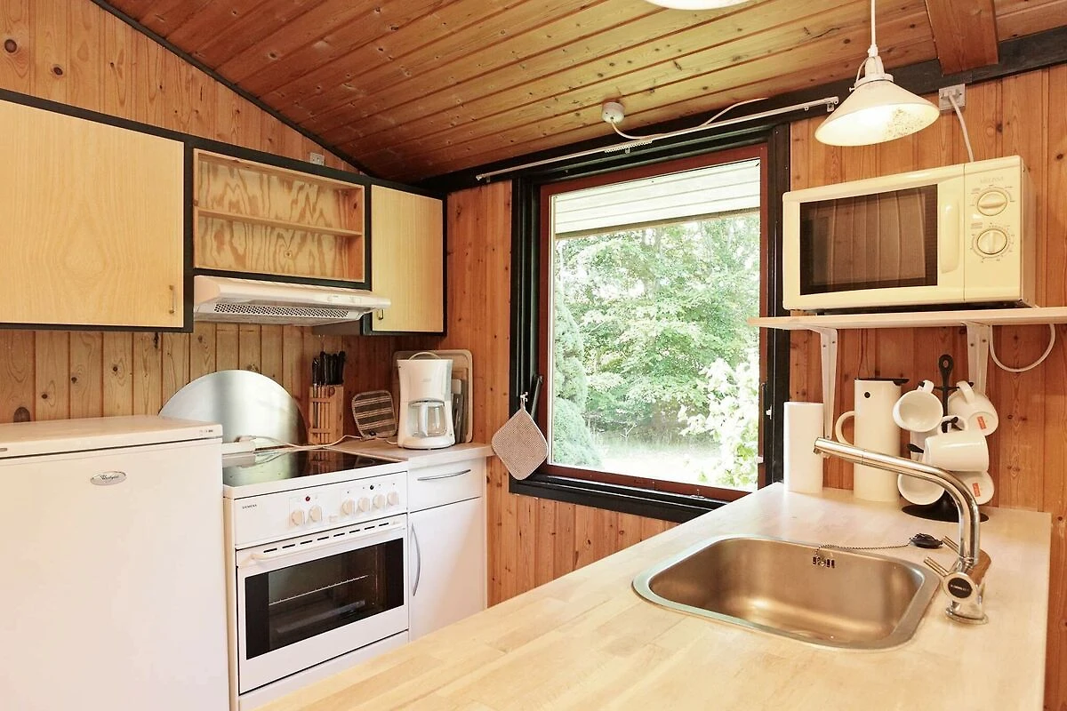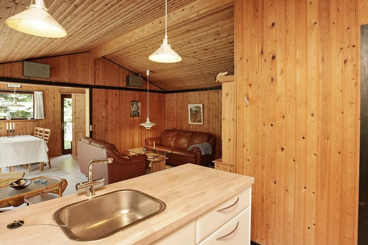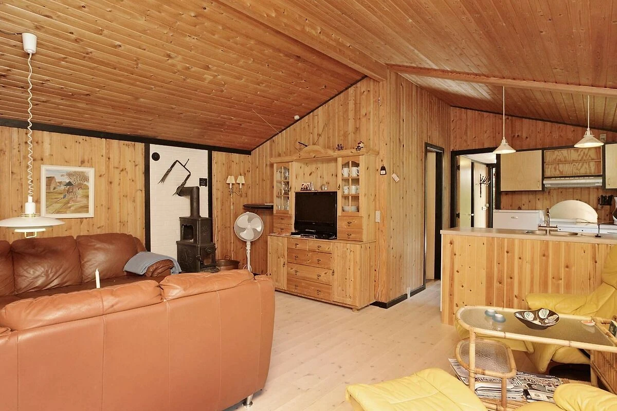 Gutes Ferienhaus ca. 1000 m vom besten Badestrand der Insel und auf einem großen Naturgrundstück gelegen. Im Haus finden Sie drei Schlafzimmer, ein Badezimmer, Küchen-/Wohnraum und einen Holzofen. Es gibt eine offene und eine überdachte Terrasse, so dass Sie den ganzen Tag lang die Sonne genießen können.
