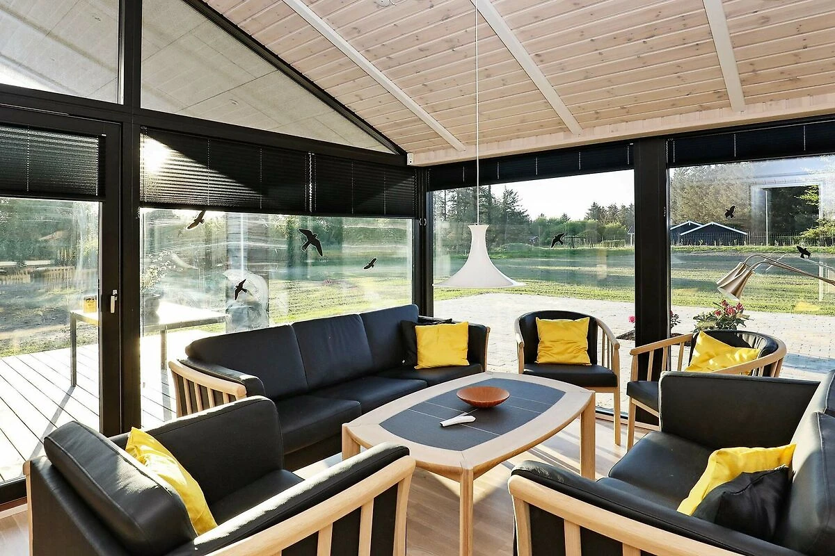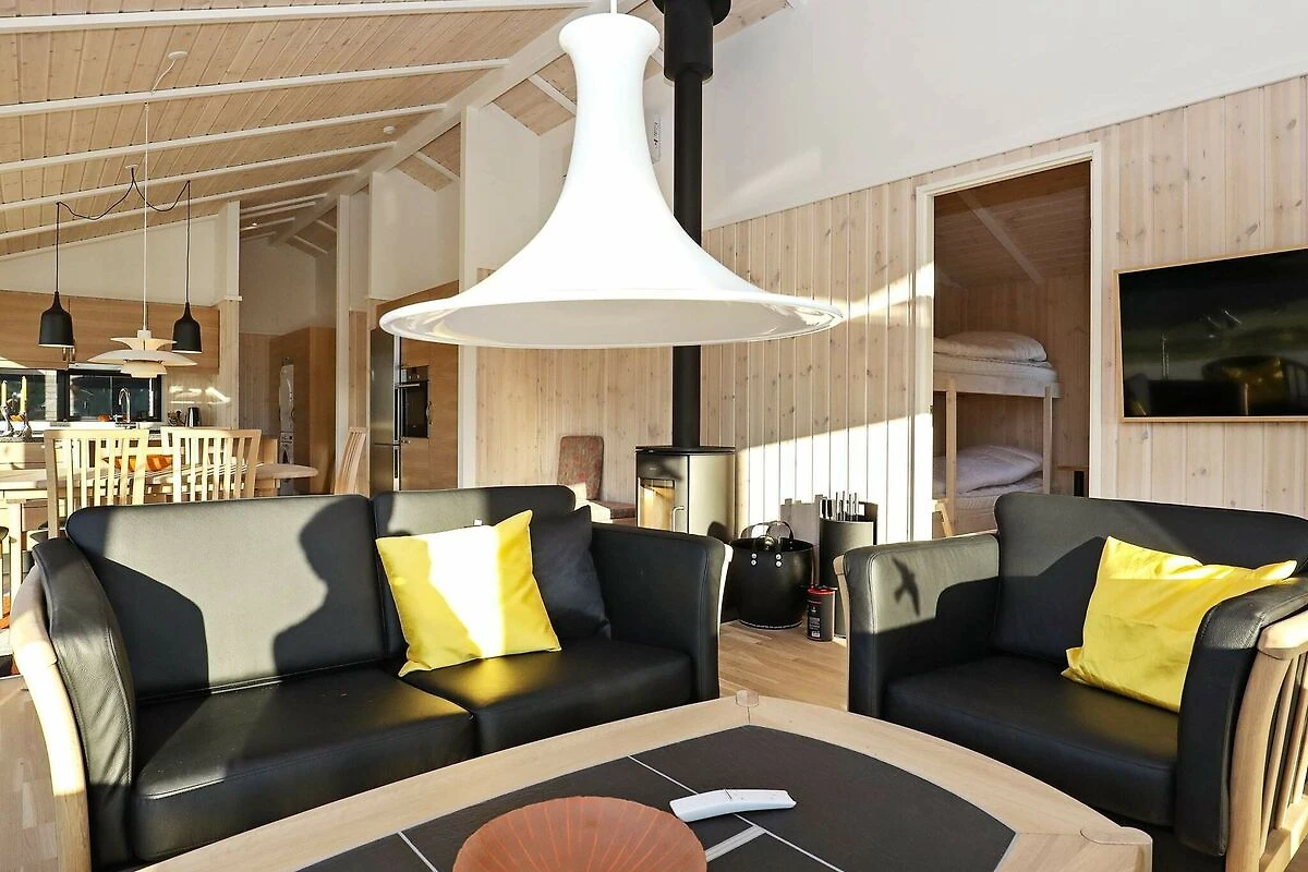 Offene Küche(Kochherd(elektrisch), Dunstabzugshaube, Kaffeemaschine, Spülmaschine, Kühl-/Gefrierkombination, Trockner, Waschmaschine), Wohn-/Schlafzimmer(TV(Kabel, Deutsch Fernsehsender, dänische Fernsehsender), Hochstuhl), Schlafzimmer(Doppelbett, Kinderbett), Schlafzimmer(Doppelbett), Schlafzimmer(Doppelbett), Schlafzimmer(2x Etagenbett), Badezimmer(Fußbodenheizung)(Badewanne oder Dusche, Waschbecken, Toilette), Badezimmer(Fußbodenheizung)(Badewanne oder Dusche, Waschbecken, Toilette), Carport, Heizung(elektrisch), Terrasse, Terrasse(überdacht), Grill, Luft-Luft-Wärmepumpe