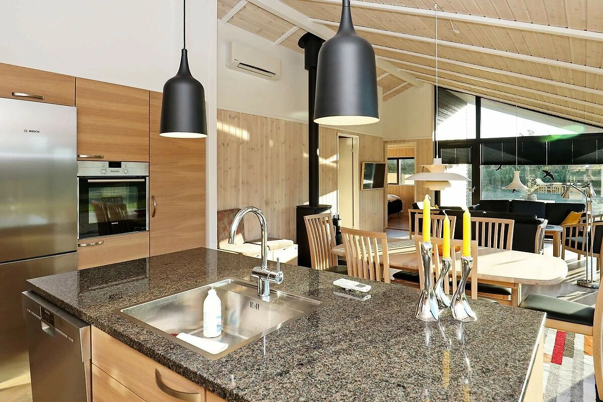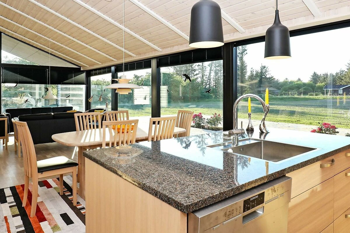 Ansprechendes Ferienhaus mit schönen Außenflächen, auf einem wunderbar abgeschirmten Naturgrundstück in der attraktiven Umgebung von Skallerup Klit gelegen. Das Haus beinhaltet Küchen-Ess-Wohnbereich, vier Schlafzimmer und zwei Badezimmer mit angenehmer Fußbodenheizung. Die Einrichtung ist ansprechend und modern und große Fensterflächen sorgen für einen schönen Lichteinfall. Hochwertige Materialien und abgestimmte Farben bewirken ein behagliches Ambiente. Für kostengünstige Erwärmung gibt es einen Kaminofen sowie eine Wärmepumpe. Genießen Sie die Sommertage auf den Terrassen, wo Sie ungestört und geschützt sitzen können. Keine Vermietung an Jugendgruppen erwünscht.Kurz vor Ihrem Ankunftsdatum kann eine rückzahlbare Kaution erhoben werden. Die Kaution stellt sicher, dass Ihr Aufenthalt reibungslos verläuft, und deckt eventuelle Zusatzleistungen oder Verbrauchskosten ab.Diese Kaution deckt den Verbrauch von Nebenkosten während Ihres Aufenthalts sowie zusätzliche in Anspruch genommene Leistungen ab.Der endgültige Betrag wird anhand der tatsächlichen Zählerstände und Nutzung zusätzlicher Services angepasst. Ein etwaiger Restbetrag wird Ihnen innerhalb von 21 Tagen nach dem Check-out zurückerstattet.Die Kaution dient lediglich als Vorauszahlung für Leistungen, die Sie ohnehin bezahlen würden, und ermöglicht einen reibungslosen Ablauf Ihres Aufenthalts und Check-outs.