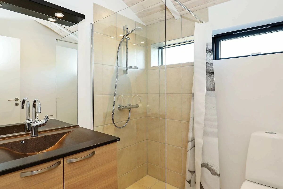 In diesem Haus war die Ausstattung sehr gut. Die Aufteilung der Räume war mal etwas anderes, was uns bisher bekannt war. So hatte ein Zimmer ein eigenes Bad. Das Haus erschien auch immer warm, sicherlich durch die große Fensterfront. Spannend war unsere Ankunft: es ging die Alarmanlage los so ca. 15 Minuten waren wir etwas hilflos. Vielleicht lag es an unsere doch etwas frühere Ankunft - gemeldet 20:00 waren 19:20 dort. Nach vergeblicher Suche -Passwort ect - ging sie alleine aus / Da hier nicht nach Mängelgefragt wurde muss ich es hier los werden. Die Duschen waren "dänisch sauber" -). Aber Duschvorhänge waren so etwas vor eklig verdreckt, das hatten wir noch nie. Wir haben es bei der Abreise angemerkt und hoffe der nächste hatte saubere Duschvorhänge.