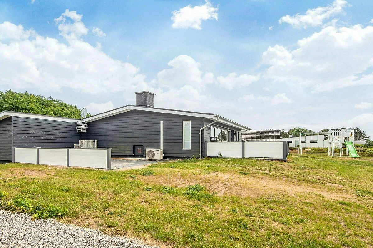 , offene Küche(Kochherd(elektrisch), Dunstabzugshaube, Kaffeemaschine, Mikrowelle, Spülmaschine, Kühlschrank, Tiefkühlschrank(60-99L), Trockner, Waschmaschine), Wohn-/Schlafzimmer(TV(Satellit, Deutsch Fernsehsender, dänische Fernsehsender), DVD-Spieler, Radio, CD-Spieler, Stereoanlage, Hochstuhl), Schlafzimmer(Doppelbett), Schlafzimmer(Doppelbett, 2x Etagenbett, Babybett), Badezimmer(Fußbodenheizung)(Badewanne oder Dusche, Waschbecken, Toilette), Heizung(elektrisch), Terrasse(Gartenmöbel, Liegestühle), Grill, Spielgeräte, Fischreinigungstisch, Luft-Luft-Wärmepumpe