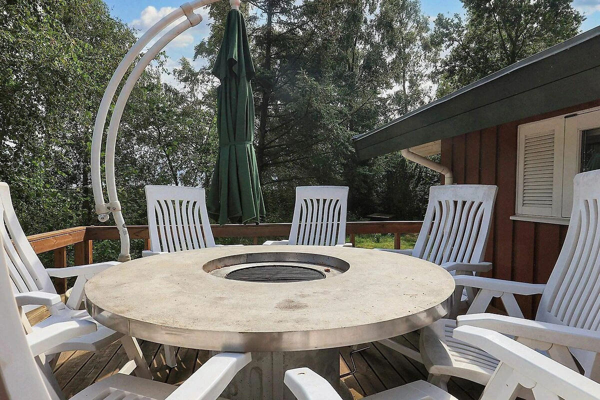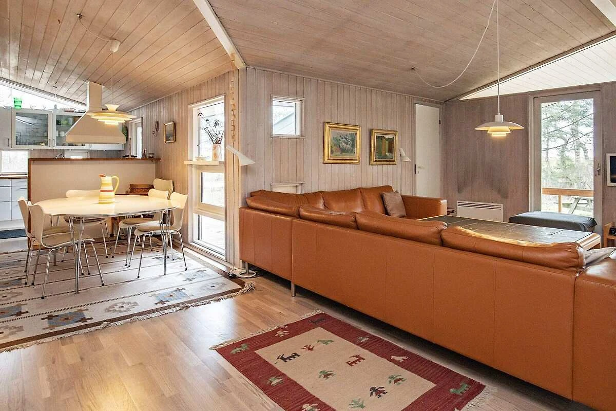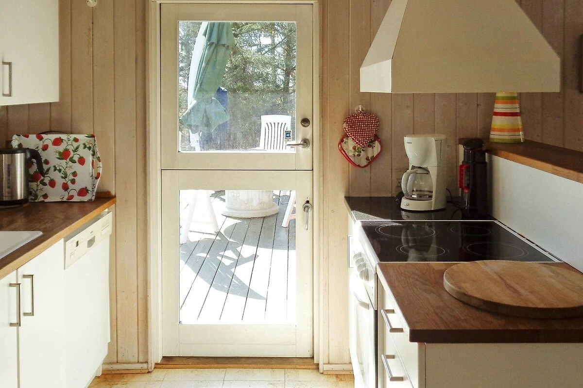 , offene Küche(Kochherd(elektrisch), Dunstabzugshaube, Kaffeemaschine, Mikrowelle, Spülmaschine, Kühl-/Gefrierkombination, Trockner, Waschmaschine), Wohn-/Schlafzimmer(TV(Kabel, Deutsch Fernsehsender, dänische Fernsehsender), Kaminofen, Hochstuhl), Schlafzimmer(Doppelbett, Babybett), Schlafzimmer(Doppelbett), Schlafzimmer(Doppelbett, Etagenbett), Schlafzimmer(Doppelbett, Etagenbett), Badezimmer(Fußbodenheizung)(Badewanne oder Dusche, Waschbecken, Toilette), Badezimmer(Fußbodenheizung)(Badewanne oder Dusche, Waschbecken, Toilette), Sauna(im Innenbereich, erwärmt, 2 Personen), Heizung(elektrisch), Terrasse, Terrasse(überdacht), Grill