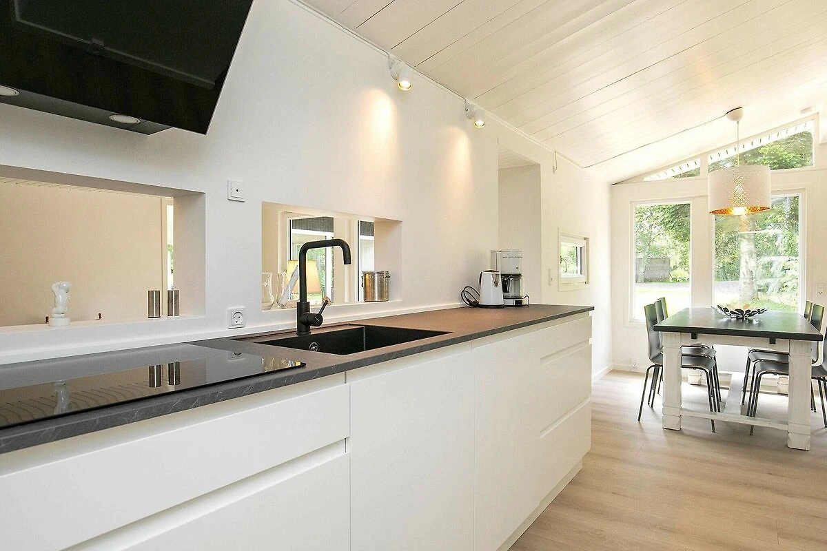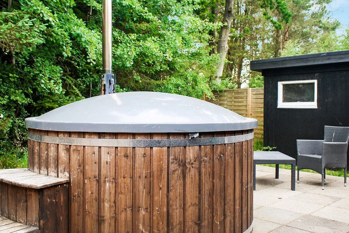 Dieses Ferienhaus mit Whirlpool, Sauna und urigem Badezuber im Außenbereich liegt auf einem Naturgrundstück bei Hou. Das Ferienhaus hat eine Küche mit gutem Essbereich und Zugang zu zwei Schlafzimmern sowie zu einem Gäste-WC. Nur eine Stufe unterhalb der Küche befindet sich der offene Wohnbereich mit TV und gemütlicher Sitzecke. Von hier hat man Zugang zu der verglasten Veranda mit Holzofen. Dort blickt man durch die große Fensterpartie hinaus auf die etwa 70 m² große Südterrasse. Von der verglasten Veranda aus hat man zudem Zugang zu zwei weiteren Schlafzimmern und einem Badezimmer mit Whirlpool, Sauna, Waschmaschine und Wäschetrockner. Das Ferienhaus ist mit zwei energieeffizienten Wärmepumpen ausgestattet. Alle vier Schlafzimmer sind mit Betten von 2019 eingerichtet. Draußen auf dem Rasengrundstück wurde ein Badezuber aufgestellt, der das ganze Jahr für ein Bad unter freiem Himmel über genutzt werden kann. Zudem gibt es ein Gartentrampolin (Nutzung nur auf eigenes Risiko).Kurz vor Ihrem Ankunftsdatum kann eine rückzahlbare Kaution erhoben werden. Die Kaution stellt sicher, dass Ihr Aufenthalt reibungslos verläuft, und deckt eventuelle Zusatzleistungen oder Verbrauchskosten ab.Diese Kaution deckt den Verbrauch von Nebenkosten während Ihres Aufenthalts sowie zusätzliche in Anspruch genommene Leistungen ab.Der endgültige Betrag wird anhand der tatsächlichen Zählerstände und Nutzung zusätzlicher Services angepasst. Ein etwaiger Restbetrag wird Ihnen innerhalb von 21 Tagen nach dem Check-out zurückerstattet.Die Kaution dient lediglich als Vorauszahlung für Leistungen, die Sie ohnehin bezahlen würden, und ermöglicht einen reibungslosen Ablauf Ihres Aufenthalts und Check-outs.