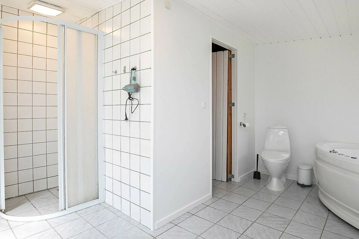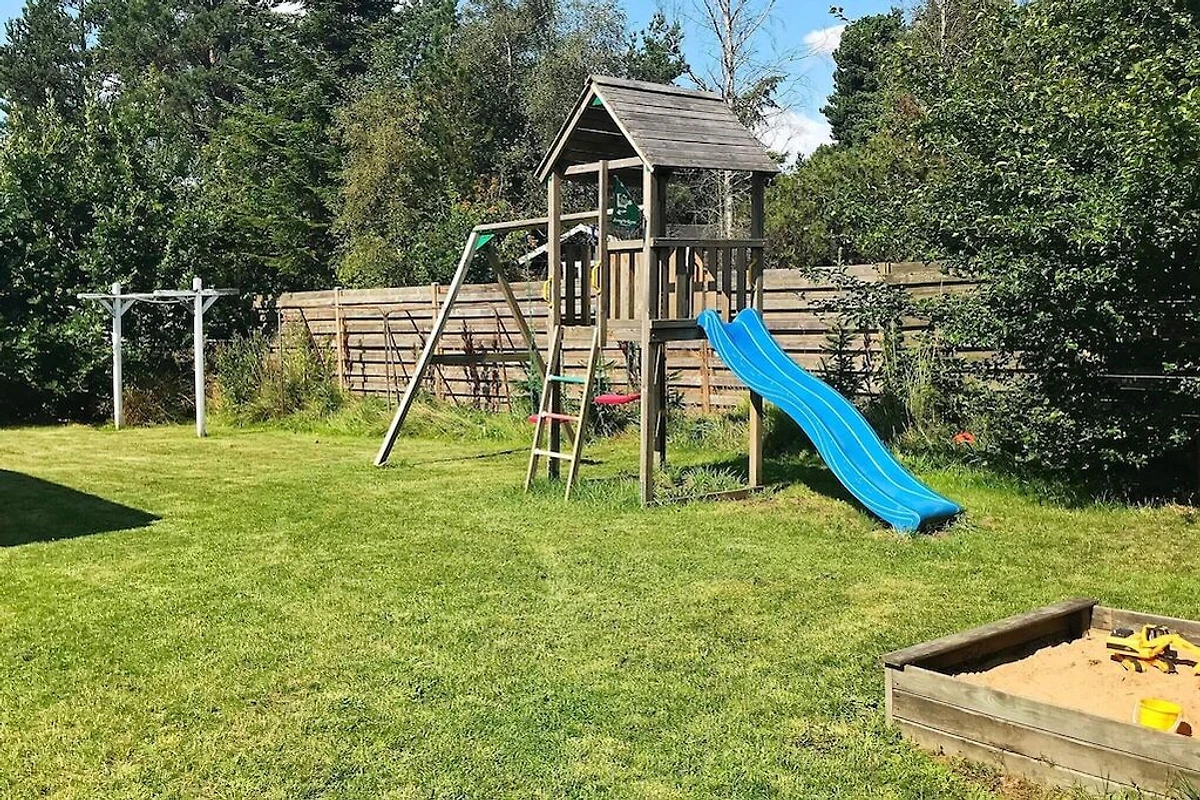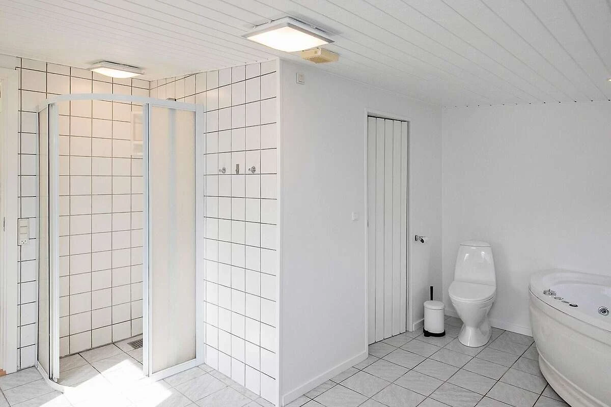 Offene Küche(Kochherd(elektrisch), Dunstabzugshaube, Kaffeemaschine, Mikrowelle, Spülmaschine, Kühl-/Gefrierkombination), Wohn-/Schlafzimmer(TV(Kabel, Deutsch Fernsehsender, dänische Fernsehsender), DVD-Spieler, CD-Spieler, Stereoanlage), Schlafzimmer(Doppelbett), Schlafzimmer(Doppelbett), Schlafzimmer(2x Einzelbett), Schlafzimmer(2x Einzelbett), Badezimmer(Fußbodenheizung)(Trockner, Badewanne oder Dusche, Waschbecken, Toilette, Waschmaschine), Badezimmer(Badewanne oder Dusche, Waschbecken, Toilette), Badewanne(im Garten), Whirlwanne(im Innenbereich, erwärmt, 2 Personen), Sauna(im Innenbereich, erwärmt, 4 Personen), Heizung(elektrisch), Terrasse, Spielgeräte, Luft-Luft-Wärmepumpe