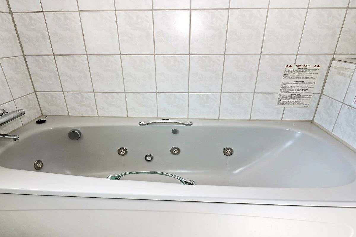 , offene Küche(Kochherd(elektrisch), Dunstabzugshaube, Kaffeemaschine, Mikrowelle, Spülmaschine, Kühl-/Gefrierkombination, Trockner, Waschmaschine), Wohn-/Schlafzimmer(TV(Satellit, Deutsch Fernsehsender), Radio, CD-Spieler, Stereoanlage), Schlafzimmer(Doppelbett, Babybett), Schlafzimmer(2x Einzelbett), Schlafzimmer(2x Etagenbett), Badezimmer(Fußbodenheizung)(Badewanne oder Dusche, Waschbecken, Toilette), Badezimmer(Fußbodenheizung)(Badewanne oder Dusche, Waschbecken, Toilette), Carport, Whirlwanne(im Innenbereich, erwärmt, 2 Personen), Sauna(im Innenbereich, erwärmt, 4 Personen), Heizung(elektrisch), Terrasse, Luft-Luft-Wärmepumpe