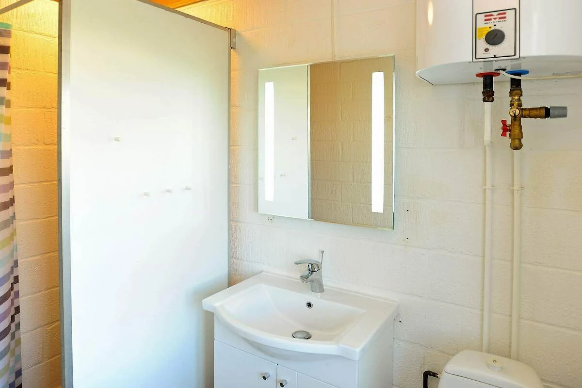 Offene Küche(Kochherd(elektrisch), Dunstabzugshaube, Kaffeemaschine, Spülmaschine, Kühlschrank, Tiefkühlschrank(60-99L)), Wohn-/Schlafzimmer(TV(Deutsch Fernsehsender, dänische Fernsehsender)), Schlafzimmer(Doppelbett), Schlafzimmer(2x Einzelbett), Schlafzimmer(2x Einzelbett), Badezimmer(Trockner(Gemeinschaftliche Nutzung mit anderen Gästen), Badewanne oder Dusche, Waschbecken, Toilette, Waschmaschine(Gemeinschaftliche Nutzung mit anderen Gästen)), Heizung(elektrisch), Terrasse, Grill, Luft-Luft-Wärmepumpe