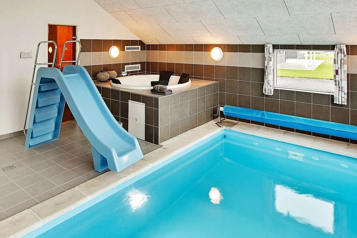 Offene Küche(Kochherd(elektrisch), Dunstabzugshaube, Kaffeemaschine, Mikrowelle, Spülmaschine, Kühl-/Gefrierkombination, Trockner, Waschmaschine), Wohn-/Schlafzimmer(TV(Satellit, Deutsch Fernsehsender), DVD-Spieler, CD-Spieler, Stereoanlage, Hochstuhl), Schlafzimmer(2x Einzelbett, Kinderbett), Schlafzimmer(2x Einzelbett), Schlafzimmer(2x Einzelbett), Schlafzimmer(2x Einzelbett), Schlafzimmer(2x Einzelbett), Badezimmer(Fußbodenheizung)(Badewanne oder Dusche, Waschbecken, Toilette), Badezimmer(Fußbodenheizung)(Badewanne oder Dusche, Waschbecken, Toilette), Empore(2x Einzelklappbett ), Kühlschrank, Whirlwanne(im Innenbereich, 6 Personen), Sauna(im Innenbereich, erwärmt, 5 Personen), Terrasse, Terrasse(überdacht, 11 m2), Grill, Pool(im Innenbereich, 140 m2), Tischtennisplatte, Tischfußball, Dart, Billard