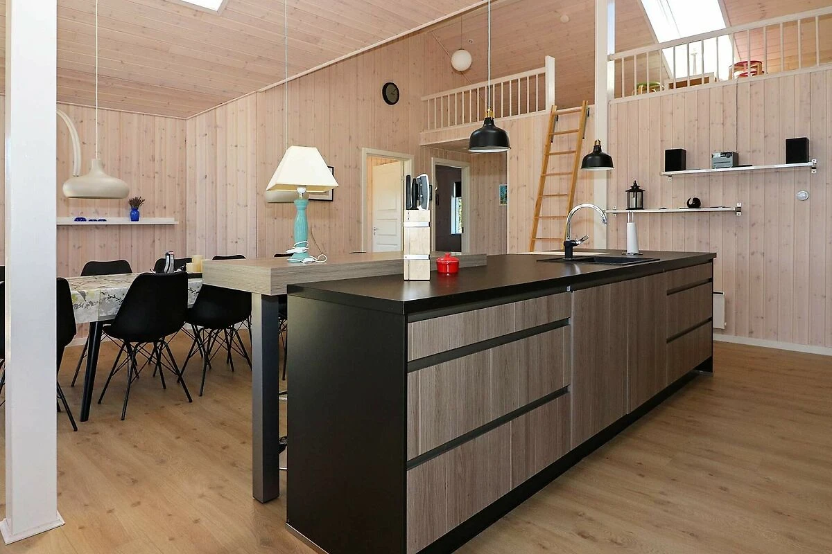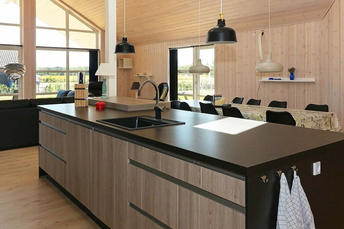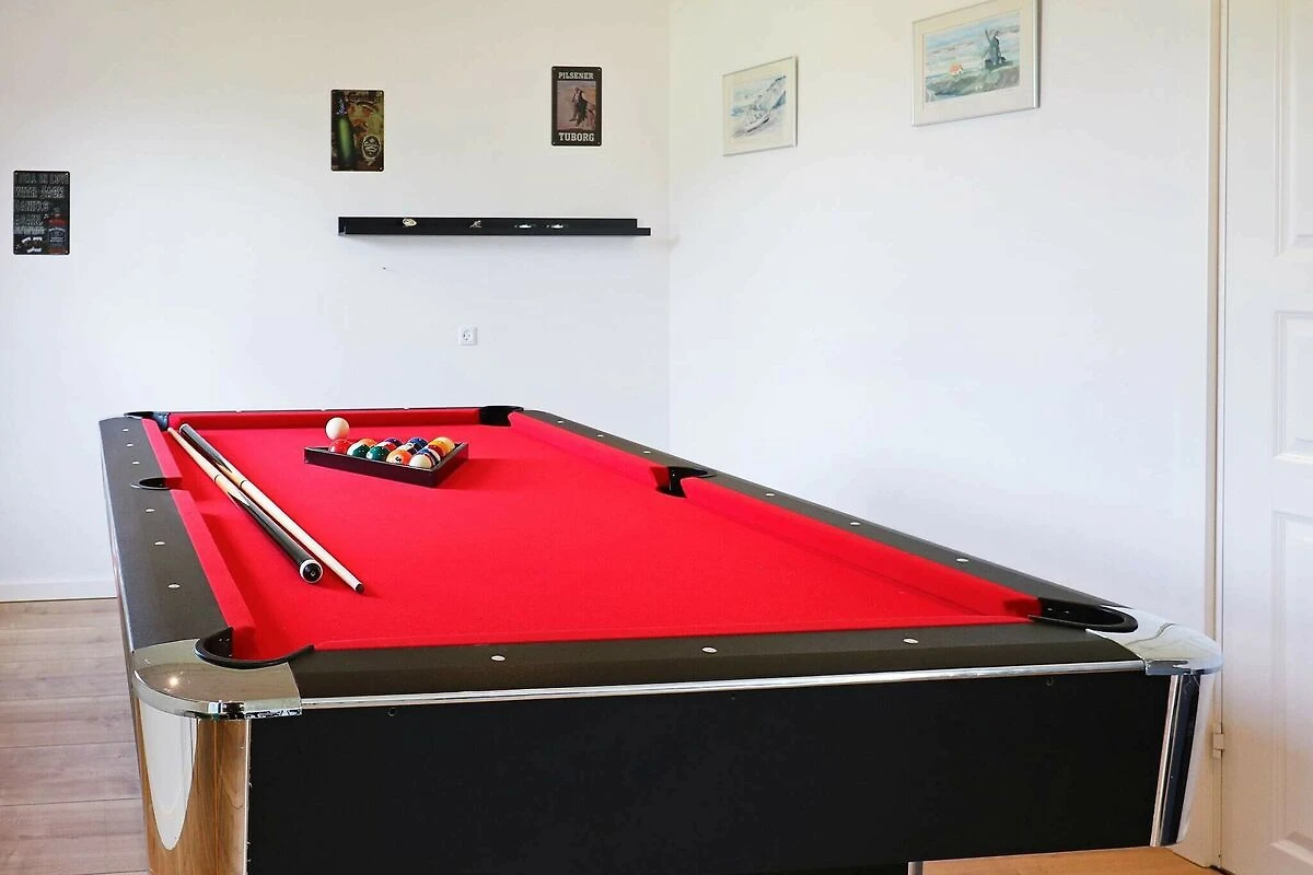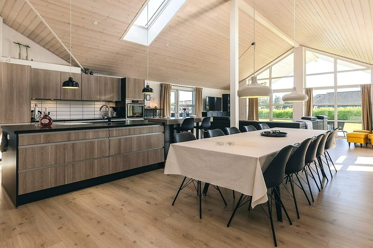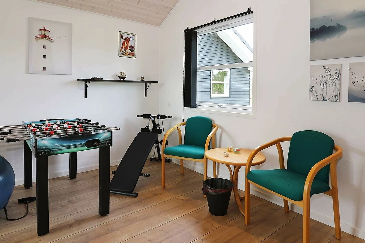 Offene Küche(Kochherd(elektrisch), Dunstabzugshaube, Kaffeemaschine, Mikrowelle, Spülmaschine, Kühl-/Gefrierkombination, Trockner, Waschmaschine), Wohn-/Schlafzimmer(TV(Deutsch Fernsehsender, dänische Fernsehsender), DVD-Spieler, Radio, CD-Spieler, Stereoanlage), Schlafzimmer(Doppelbett), Schlafzimmer(Doppelbett), Schlafzimmer(Doppelbett), Schlafzimmer(Doppelbett), Badezimmer(Fußbodenheizung)(Badewanne oder Dusche, Waschbecken, Toilette), Badezimmer(Fußbodenheizung)(Badewanne oder Dusche, Waschbecken, Toilette), Empore(2x Einzelklappbett ), Carport, Whirlwanne(im Innenbereich, erwärmt, 2 Personen), Sauna(im Innenbereich, erwärmt, 4 Personen), Heizung(elektrisch), Terrasse, Terrasse(überdacht), Garten, Spielgeräte, Tischfußball, Fußballtor, Billard, Luft-Luft-Wärmepumpe