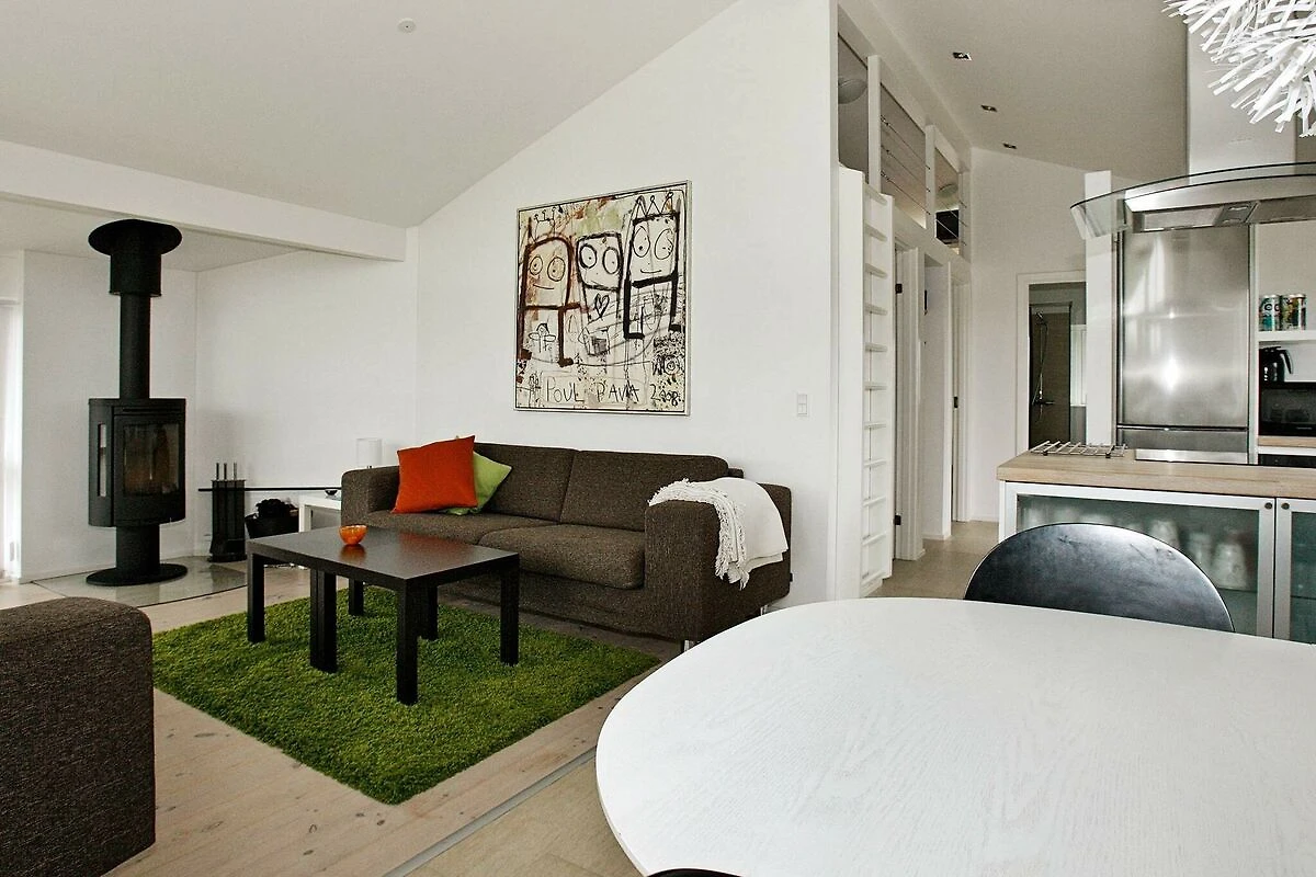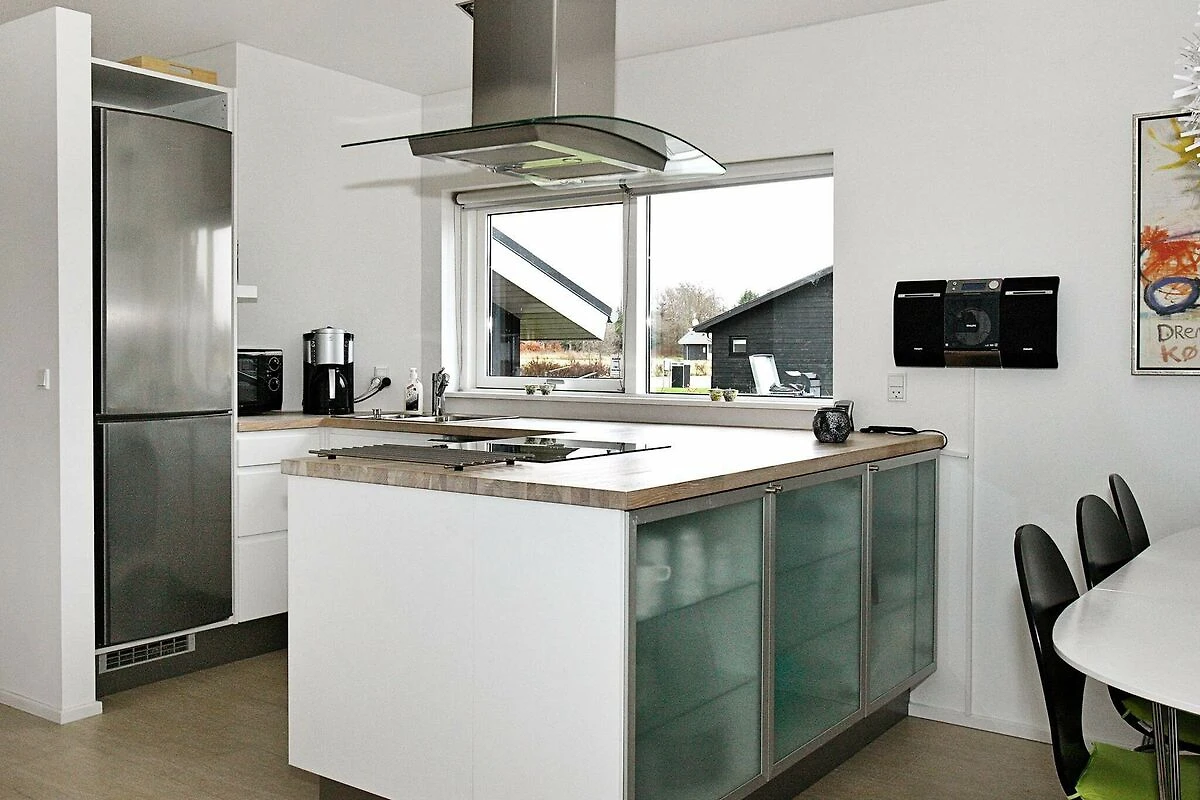 Offene Küche(Kochherd(elektrisch), Dunstabzugshaube, Kaffeemaschine, Mikrowelle, Spülmaschine, Kühl-/Gefrierkombination, Waschmaschine), Wohn-/Schlafzimmer(TV(Satellit, dänische Fernsehsender), DVD-Spieler, CD-Spieler, Stereoanlage), Schlafzimmer(Doppelbett), Schlafzimmer(Doppelbett), Schlafzimmer(2x Einzelbett), Badezimmer(Fußbodenheizung)(Badewanne oder Dusche, Waschbecken, Toilette), Badezimmer(Fußbodenheizung)(Badewanne oder Dusche, Waschbecken, Toilette), Whirlwanne(im Innenbereich, erwärmt), Sauna(im Innenbereich, erwärmt), Heizung(elektrisch), Terrasse, Terrasse(überdacht), Luft-Luft-Wärmepumpe