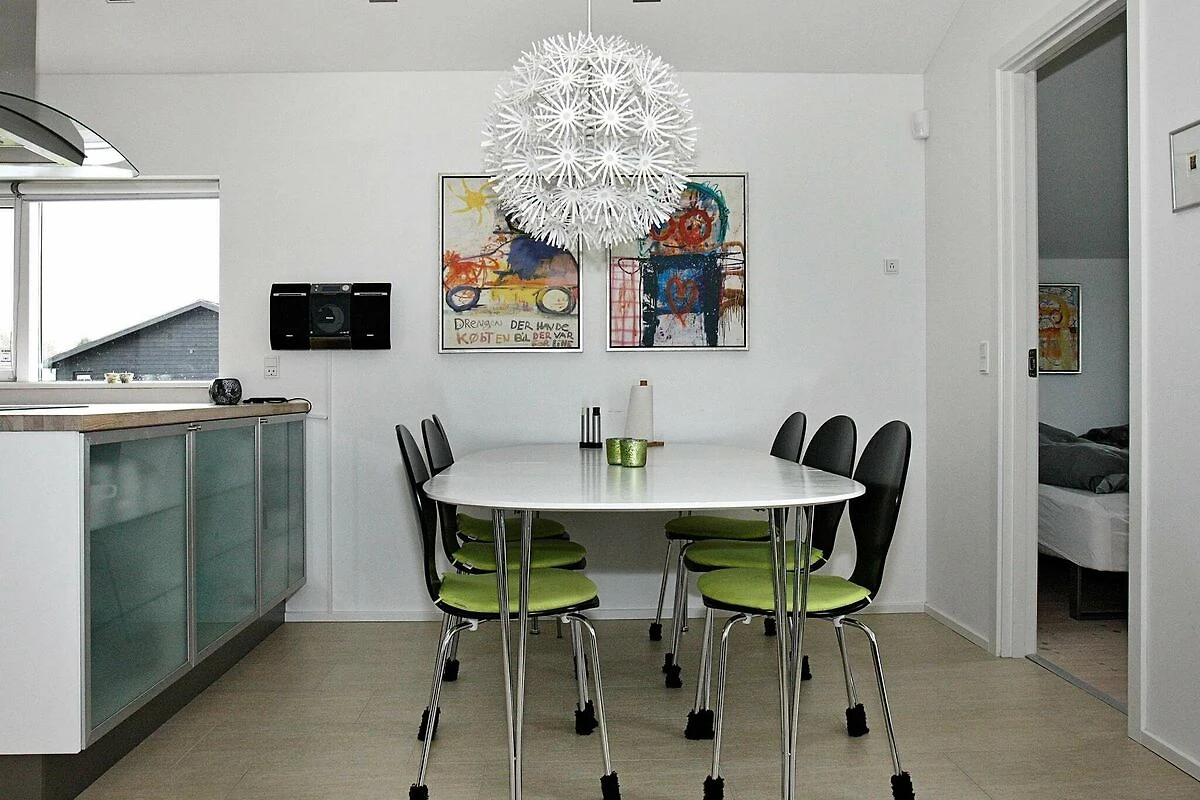 Dieses Ferienhaus liegt in einem großen Ferienhausgebiet mit vielen Freiflächen. Es ist modern und mit vielen spannenden Details eingerichtet. Gut ausgestatteter Küchen-Essbereich, der mit dem Wohnzimmer kombiniert ist, in dem ein Holzofen an kühlen Tagen wohlige Wärme verbreitet. PlayStation vorhanden. Die Boxspringbetten können einzeln oder zusammengestellt werden. In dem einen der beiden Badezimmer ist der Whirlpool untergebracht. Die Terrassen rund um das Haus laden zu gemütlichen Stunden im Freien ein, und auch der kinderfreundliche Sandstrand ist zu Fuß gut erreichbar. In Øster Hurup erwarten Sie Geschäfte, Restaurants und natürlich der Hafen, wo Sie Krabben fangen, die Segelboote beobachten oder einen Drink in einer der Gaststätten genießen können. Für Tagesausflüge lohnen der Aalborg Zoo, der Regenwald in Randers, das Djurs Sommerland oder die Fregatte Jylland in Ebeltoft. Keine Vermietung an Jugendgruppen.