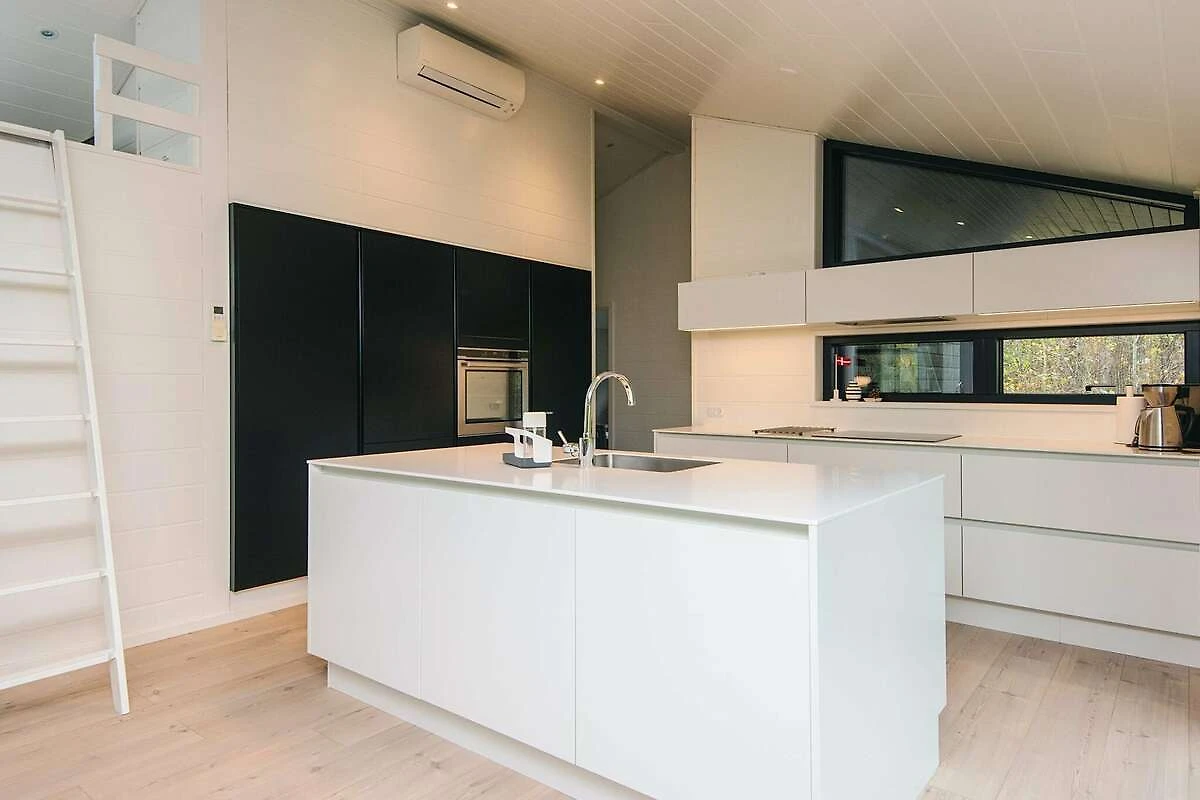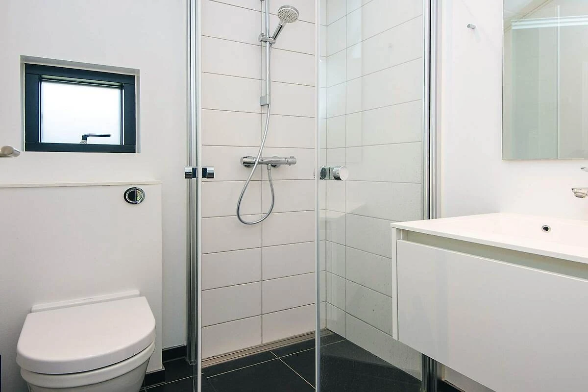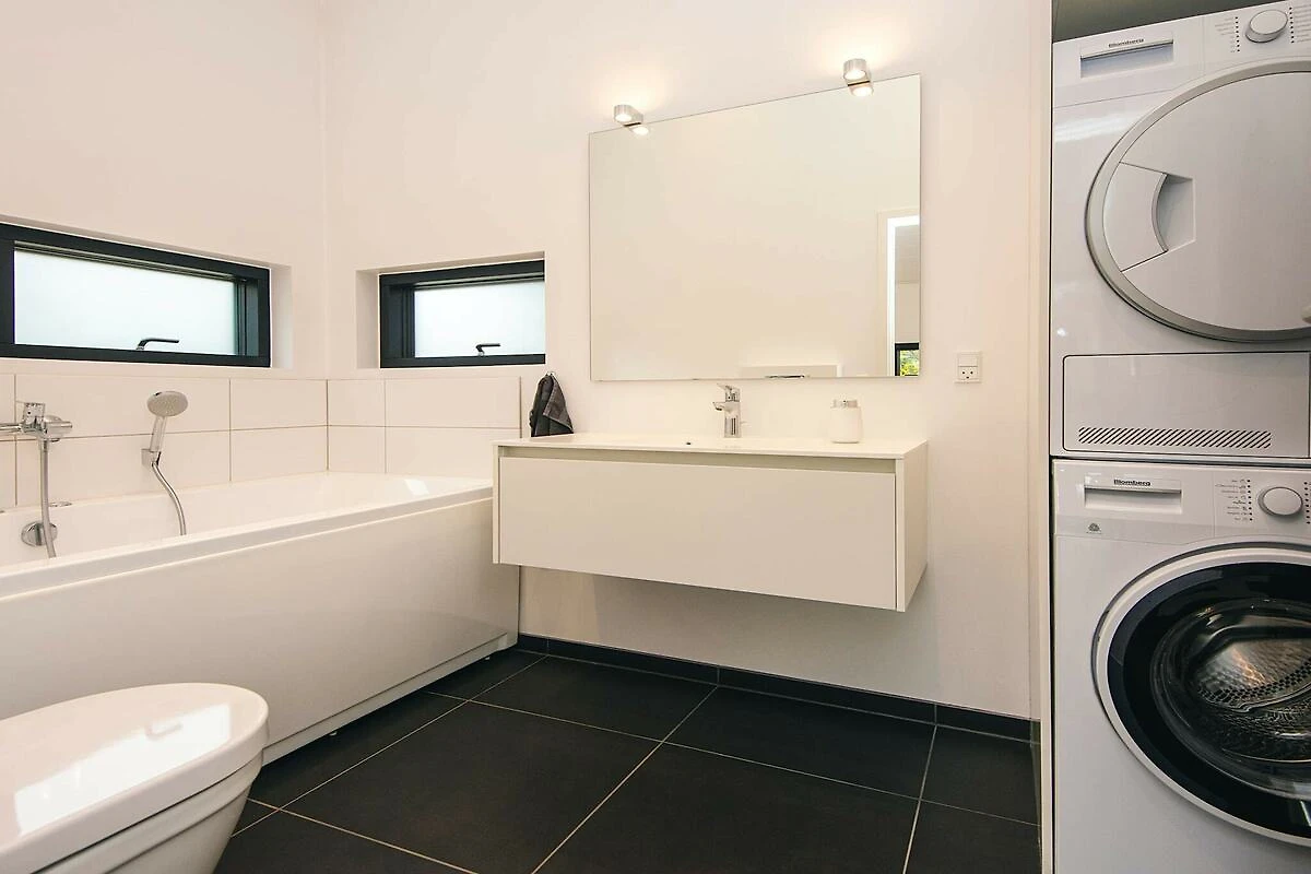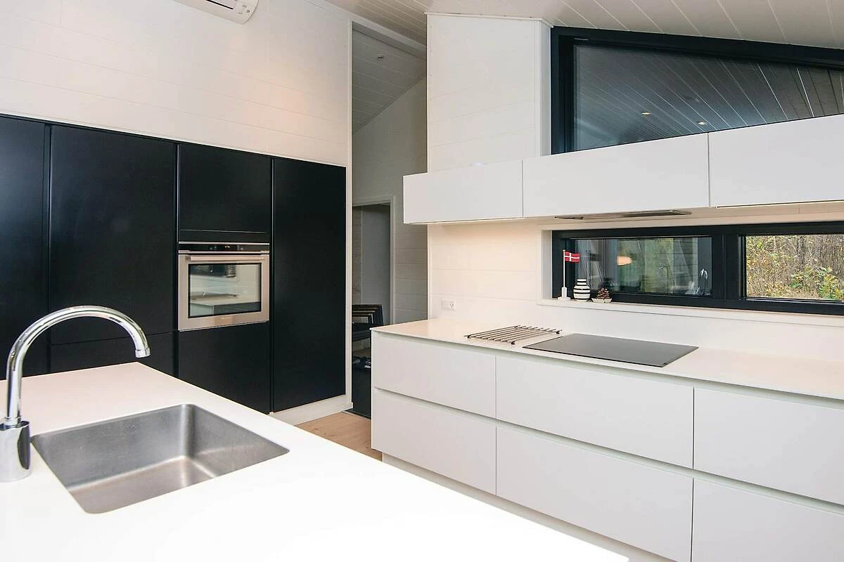 , Wohnzimmer(2x Einzelklappbett ), offene Küche(Kochherd(elektrisch), Dunstabzugshaube, Kaffeemaschine, Mikrowelle, Spülmaschine, Kühl-/Gefrierkombination, Trockner, Waschmaschine), Wohn-/Schlafzimmer(TV(Kabel, Deutsch Fernsehsender, dänische Fernsehsender), DVD-Spieler, Radio, Hochstuhl), Schlafzimmer(Doppelbett), Schlafzimmer(Doppelbett), Schlafzimmer(Einzelbett, Doppelbett), Badezimmer(Fußbodenheizung)(Badewanne oder Dusche, Waschbecken, Toilette), Badezimmer(Badewanne), Whirlwanne(im Innenbereich, erwärmt, 2 Personen), Heizung(elektrisch), Terrasse, Grill, Luft-Luft-Wärmepumpe
