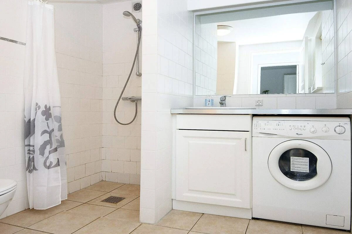 , offene Küche(Kochherd(elektrisch), Dunstabzugshaube, Kaffeemaschine, Mikrowelle, Spülmaschine, Kühlschrank(+ Gefrierfach), Waschmaschine), Wohn-/Schlafzimmer(TV(Kabel, Deutsch Fernsehsender, dänische Fernsehsender), CD-Spieler, Stereoanlage), Schlafzimmer(Doppelbett), Schlafzimmer(Doppelbett), Schlafzimmer(Doppelbett), Schlafzimmer(Doppelbett), Badezimmer(Fußbodenheizung)(Badewanne oder Dusche, Waschbecken, Toilette), Badezimmer(Badewanne oder Dusche, Waschbecken, Toilette), Whirlwanne(im Innenbereich, erwärmt, 3 Personen), Sauna(im Innenbereich, erwärmt, 4 Personen), Heizung(elektrisch), Terrasse, Grill, Pool(Gemeinschaftliche Nutzung mit anderen Gästen, im Innenbereich)