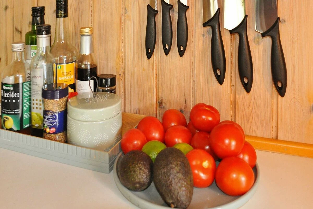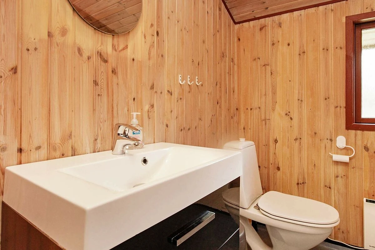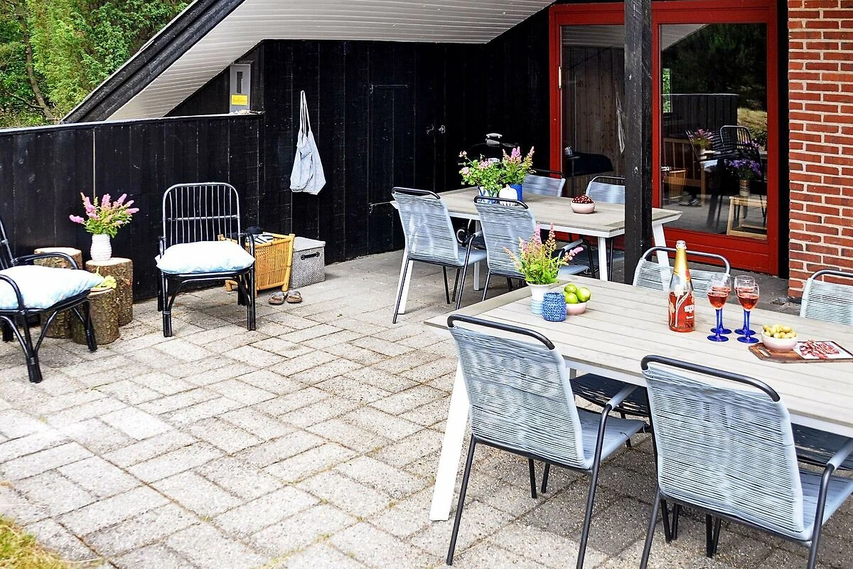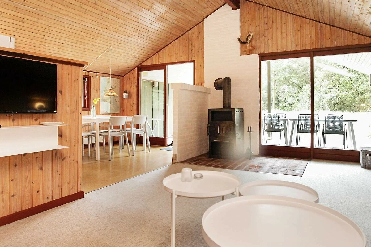 Offene Küche(Kochherd(elektrisch), Dunstabzugshaube, Kaffeemaschine, Spülmaschine, Kühl-/Gefrierkombination, Waschmaschine), Wohn-/Schlafzimmer(TV(Satellit, Deutsch Fernsehsender, dänische Fernsehsender), DVD-Spieler, CD-Spieler, Stereoanlage, Hochstuhl), Schlafzimmer(Doppelbett, Kinderbett), Schlafzimmer(Doppelbett), Schlafzimmer(2x Etagenbett), Badezimmer(Badewanne oder Dusche, Waschbecken, Toilette), Heizung(elektrisch), Terrasse, Grill