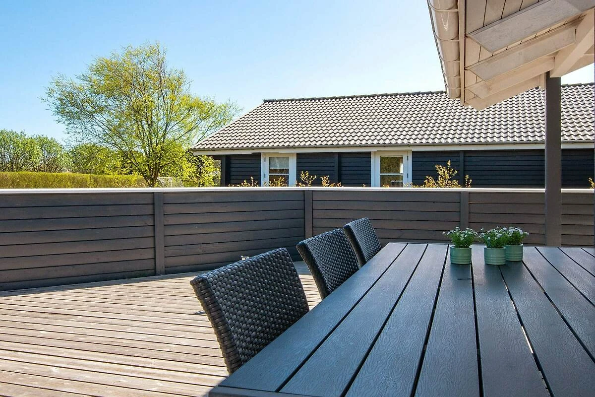 , Wohnzimmer(2x Einzelklappbett ), offene Küche(Kochherd(elektrisch), Dunstabzugshaube, Kaffeemaschine, Mikrowelle, Spülmaschine, Kühl-/Gefrierkombination), Wohn-/Schlafzimmer(TV(Kabel, Deutsch Fernsehsender, dänische Fernsehsender), Hochstuhl), Schlafzimmer(Doppelbett, Babybett), Schlafzimmer(Doppelbett), Schlafzimmer(Doppelbett), Badezimmer(Fußbodenheizung)(Trockner, Badewanne oder Dusche, Waschbecken, Toilette, Waschmaschine), Badezimmer(Waschbecken, Toilette), Whirlwanne(im Innenbereich, erwärmt, 2 Personen), Sauna(im Innenbereich, erwärmt, 3 Personen), Heizung(elektrisch), Terrasse, Terrasse(überdacht), Grill, Luft-Luft-Wärmepumpe