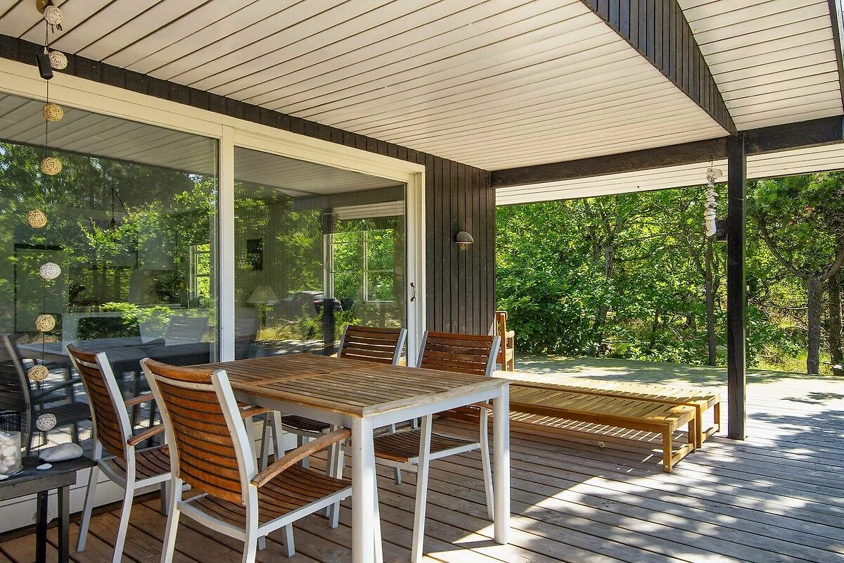 Das Haus ist unmittelbar in Strandnähe, Zu Fuß sind es gut nur 3-4 Minuten, / Das Grundstück ist naturbelassen und mit Bäumen umgeben, / Die Terrasse ist sehr großzügig neu gebaut, / Auch die überdachte Terrasse kann bei Regen genutzt werden,
