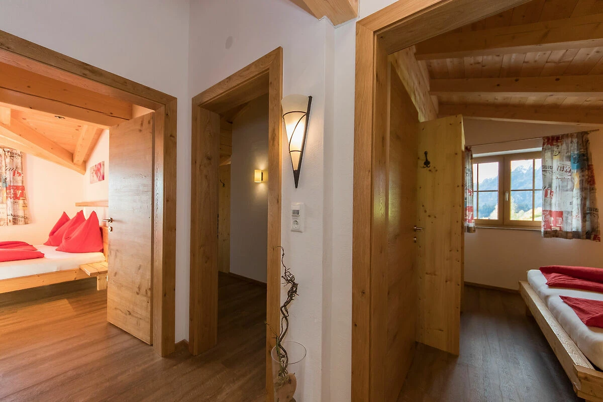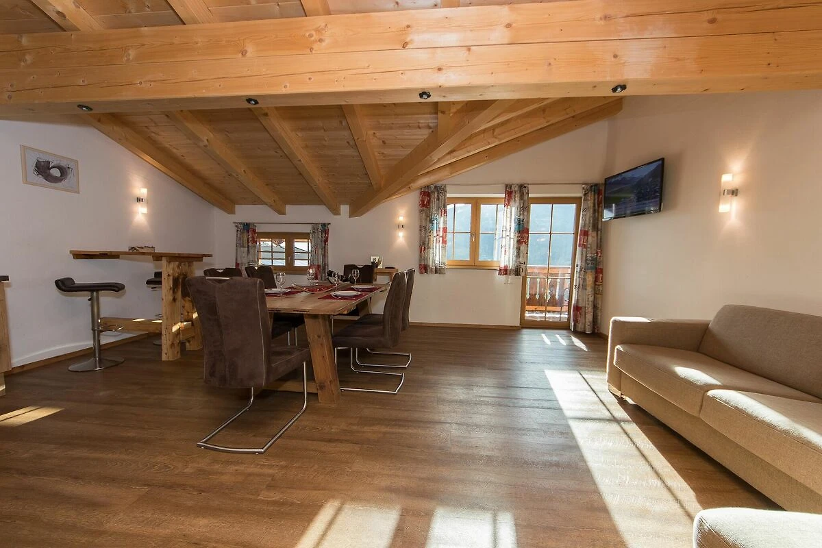 Beide Apartments sind geräumig und modern eingerichtet, wobei stimmungsvolle österreichische Details nicht vergessen wurden. Die geschmackvollen Wohnräume, jeweils mit einer offenen Küche, bieten viel Platz. Darüber hinaus stehen Ihnen insgesamt 7 Schlafzimmer und 7 Badezimmer zur Verfügung. Vom den Balkonen aus hat man eine einzigartige Aussicht auf die umliegende Berglandschaft. Im Sommer können Sie zudem auch den großen Garten nutzen und Parkmöglichkeiten gibt es direkt beim Haus.
