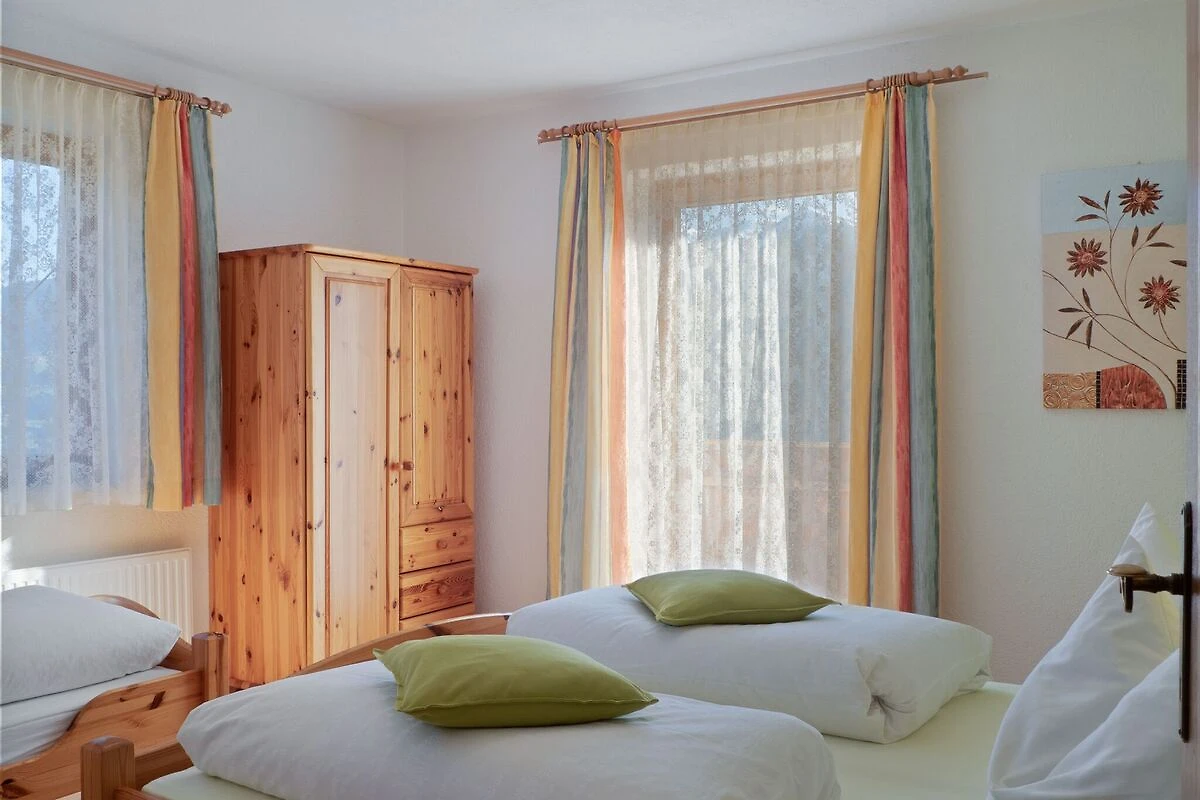 Hallo, wir waren mit 2 Erwachsenen und 4 Kindern für 10 Tage im Steiger Hof in Fügenberg auf 1.030m mit einem herrlichen Blick auf das Zillertal (Südlage). 3 Zimmer à 3 Betten standen zur Verfügung, absolut sauber und geräumig. Eine große Küche mit Esstisch für alle Gäste. Zwei Bäder mit Dusche, aber nur eine Toilette. Ansonsten sehr empfehlenswert und wir würden es wieder buchen.