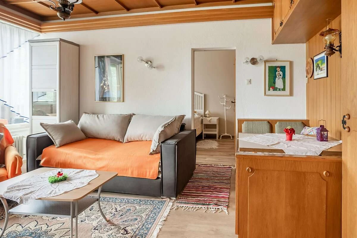 In der 1. Etage: (Eingangshalle, Wohnzimmer(Schlafcouch 1 Pers., TV(Satellit), Radio), Küche(Kochherd(4 Kochplatten), Backofen, Mikrowelle, Kühl-/Gefrierkombination), Schlafzimmer(Doppelbett), Badezimmer(Dusche, Waschbecken, Toilette))