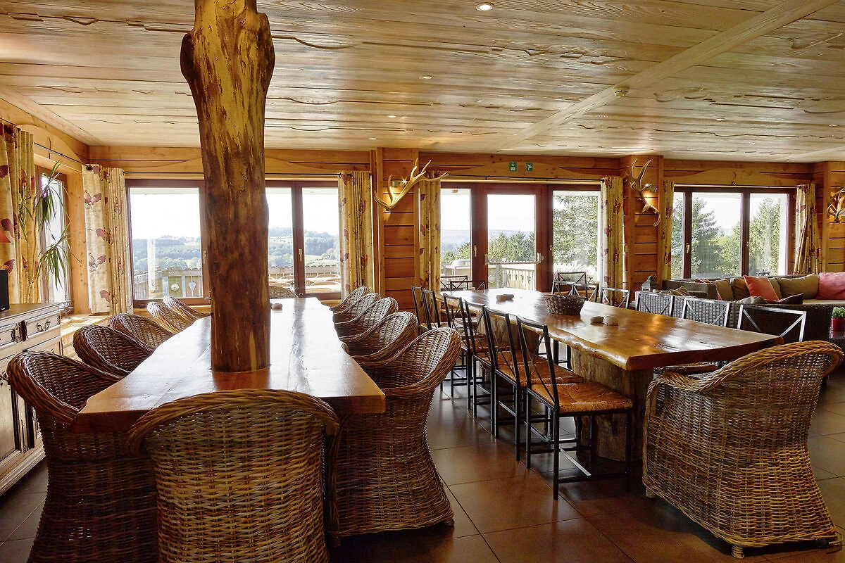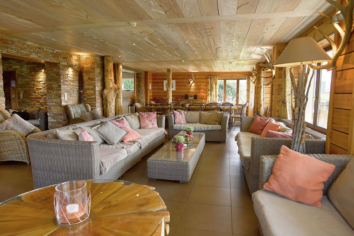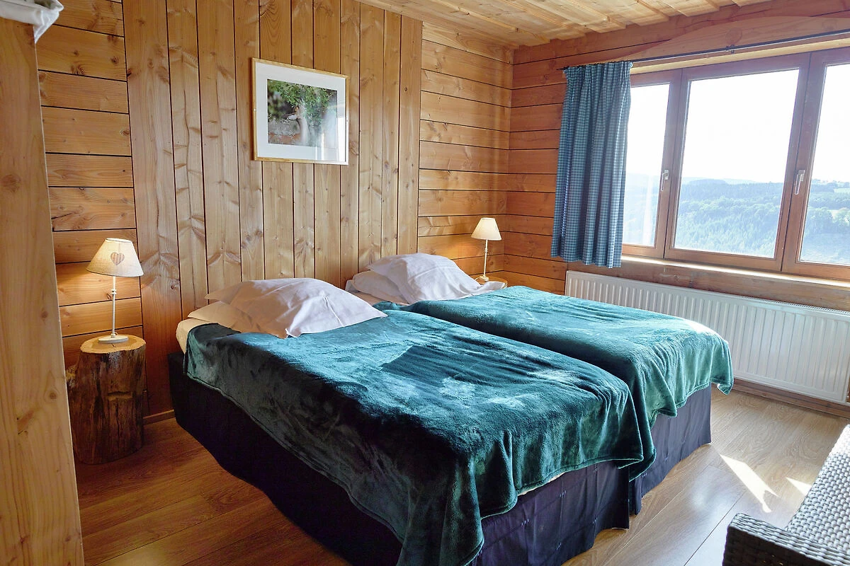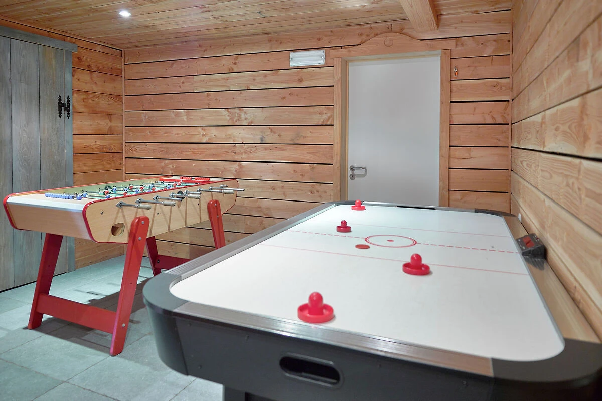 Das Chalet ist luxuriös eingerichtet und hat ein großes Wohnzimmer mit schöner Sitzecke und Holzofen. Die luxuriöse offene Küche grenzt an den Essbereich mit Esstischen an, an dem bis zu 24 Personen Platz finden. Jedes Schlafzimmer hat ein eigenes Badezimmer. Es gibt ein Innenschwimmbad und eine Sauna, um sich vollständig zu entspannen. Ferner finden Sie iene Bar mit Poolbillard, und für die Kinder gibt es ein Spielzimmer mit Tischfußball und Air-Hockey. Der große Garten hat eine große Terrasse mit Grill und bietet eine atemberaubende Aussicht über die hügelige Landschaft.