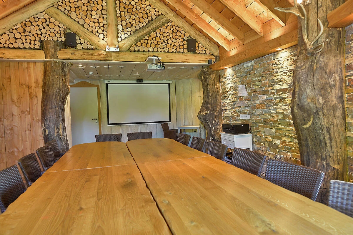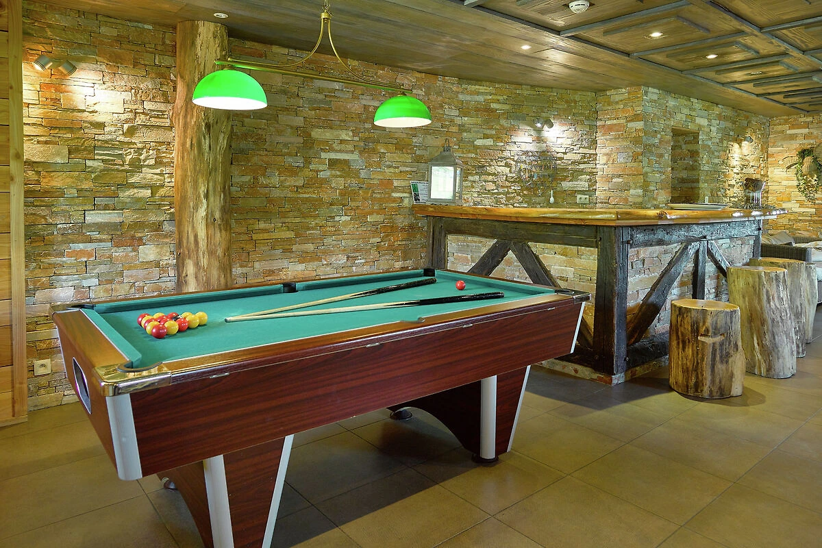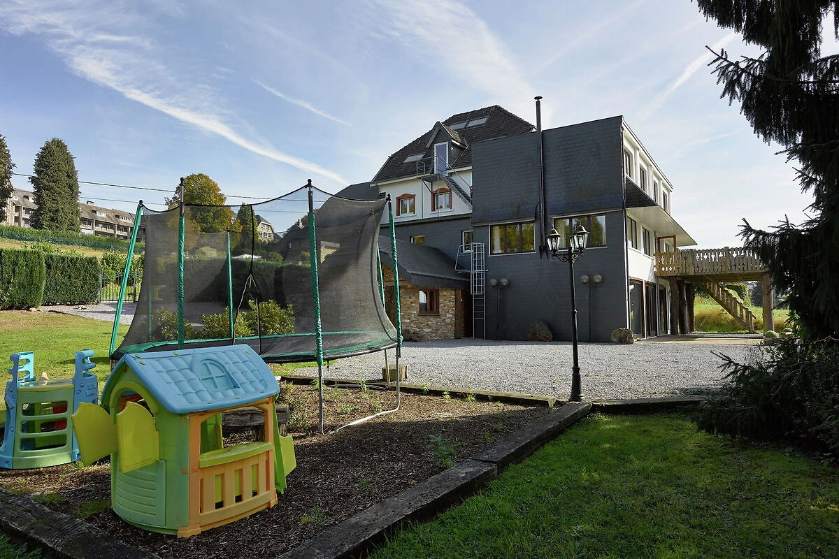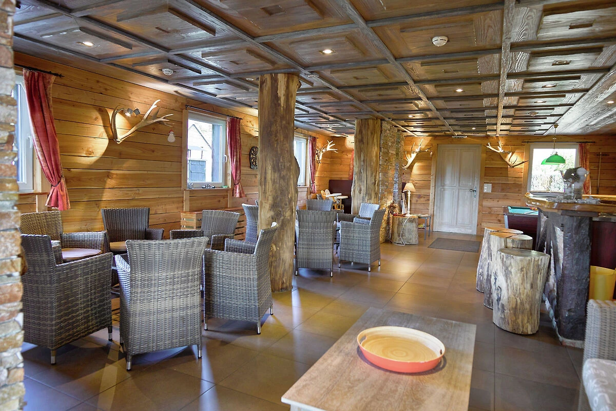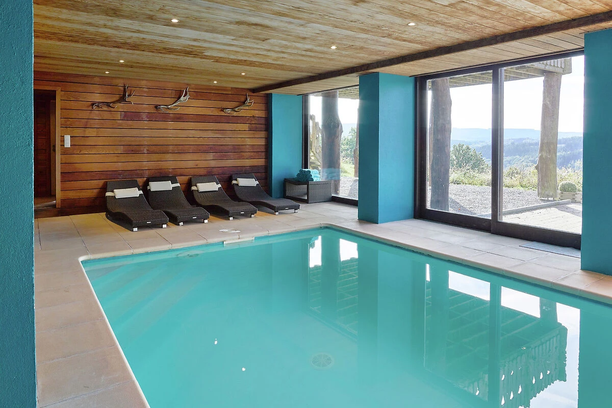 Das Chalet ist luxuriös eingerichtet und hat ein großes Wohnzimmer mit schöner Sitzecke und Holzofen. Die luxuriöse offene Küche grenzt an den Essbereich mit Esstischen an, an dem bis zu 24 Personen Platz finden. Jedes Schlafzimmer hat ein eigenes Badezimmer. Es gibt ein Innenschwimmbad und eine Sauna, um sich vollständig zu entspannen. Ferner finden Sie iene Bar mit Poolbillard, und für die Kinder gibt es ein Spielzimmer mit Tischfußball und Air-Hockey. Der große Garten hat eine große Terrasse mit Grill und bietet eine atemberaubende Aussicht über die hügelige Landschaft.