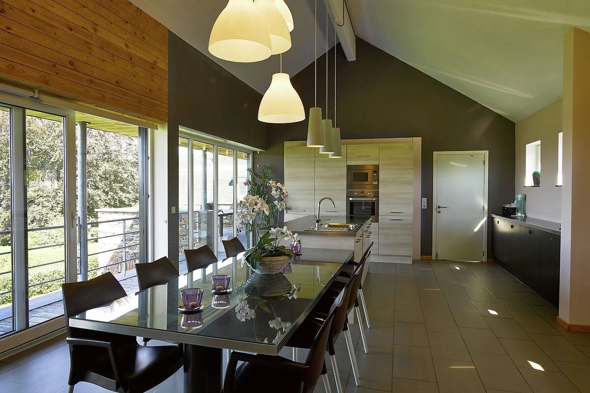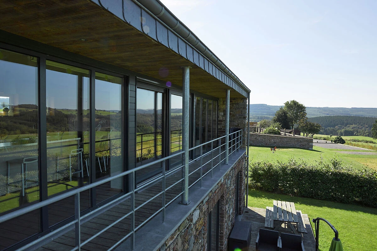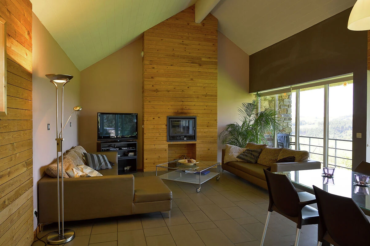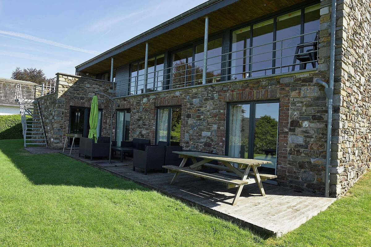 Das Ferienhaus ist in einem besonders schönen Baustil errichtet und es wurden sowohl moderne als auch klassische Materialien, worunter Naturstein und Holz, verwendet. In Kombination mit den großen Fenstern fühlen Sie sich mit all diesem Komfort doch eins mit der Natur. Die herrliche Terrasse und der große Garten blicken über das Amblèvetal, von wo aus Sie Zugang zu einem gemeinschaftlichen Volleyballfeld und 3 Boulesbahnen haben.
