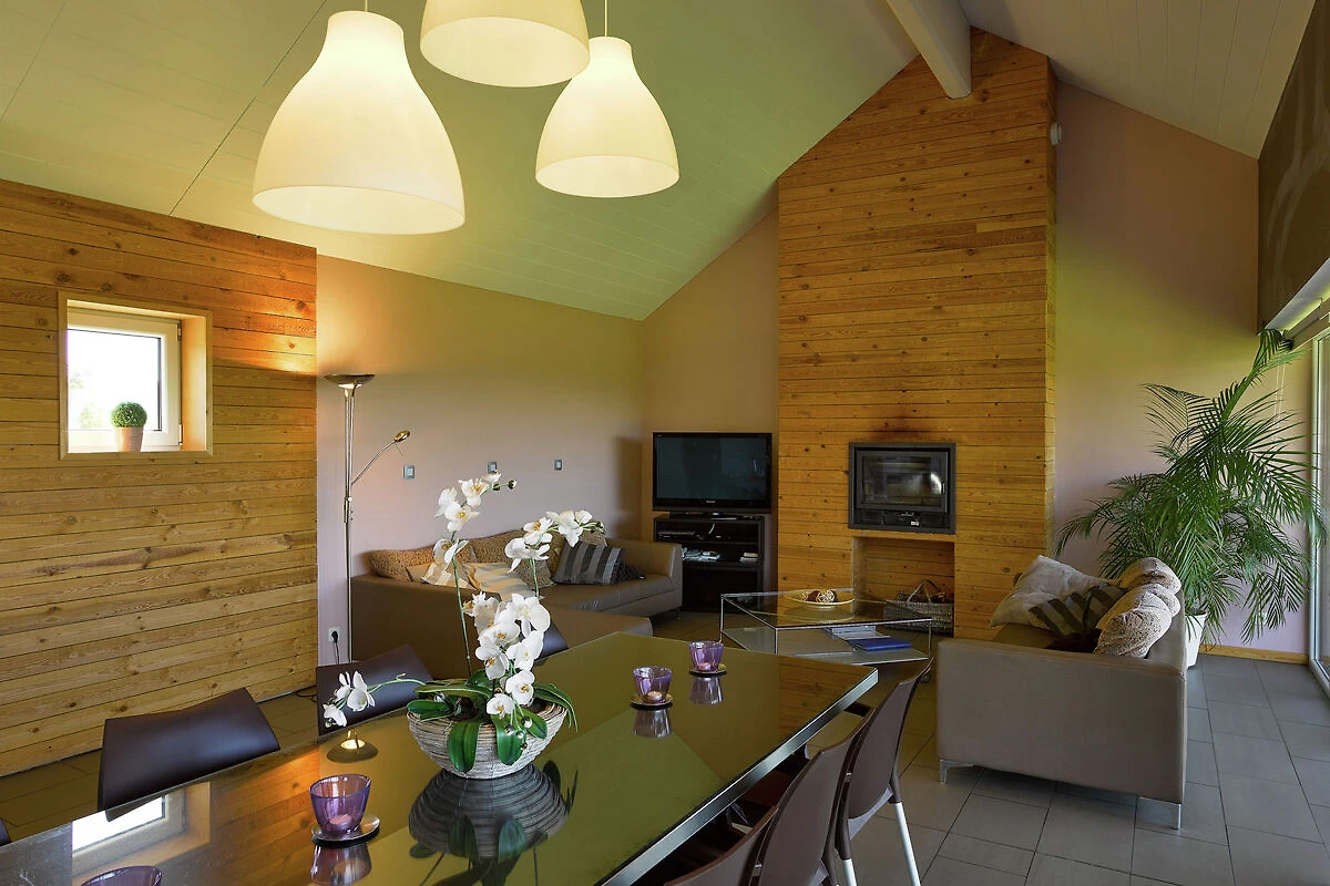 Sehr angenehmer Urlaub, Anfang Juli 2025. Die großen Fenster nach Südwesten sorgen dafür, dass es drinnen sehr warm werden kann, wenn die Sonne stark scheint. Aber das war nur in den ersten 2 oder 3 Tagen der Fall. Vom Haus aus kann man sofort mit dem Wandern (oder Radfahren, wenn das dein Ding ist) beginnen. Und wenn du die Wanderungen in der Nähe alle gemacht hast, gibt es noch genug Alternativen, die 10 oder 15 Minuten Fahrt entfernt sind. Die Umgebung ist sehr schön; Abwechslung von Wiesen, Laubwäldern, Kiefern . . . Der Bäcker im Dorf hat jeden Tag frisches Brot, vor Ort gebacken. Es gibt auch eine Apotheke, falls nötig. Restaurants sind 10 Minuten entfernt. Für größere Einkäufe muss man etwas weiter fahren. Das Haus ist gut ausgestattet; in der Küche ist alles, was man braucht. Es war bei der Ankunft sauber. Die Sauna und der Whirlpool haben wir nicht genutzt, sahen aber in Ordnung aus. Die Schlafzimmer sind in Ordnung; alle mit einem eigenen Waschbecken und Dusche. Die Eigentümer sind freundliche Menschen, die ihr Bestes tun, um dir zu helfen, wenn es etwas gibt. Wir mieten seit über 20 Jahren Ferienhäuser bei verschiedenen Organisationen, aber das ist wirklich empfehlenswert!