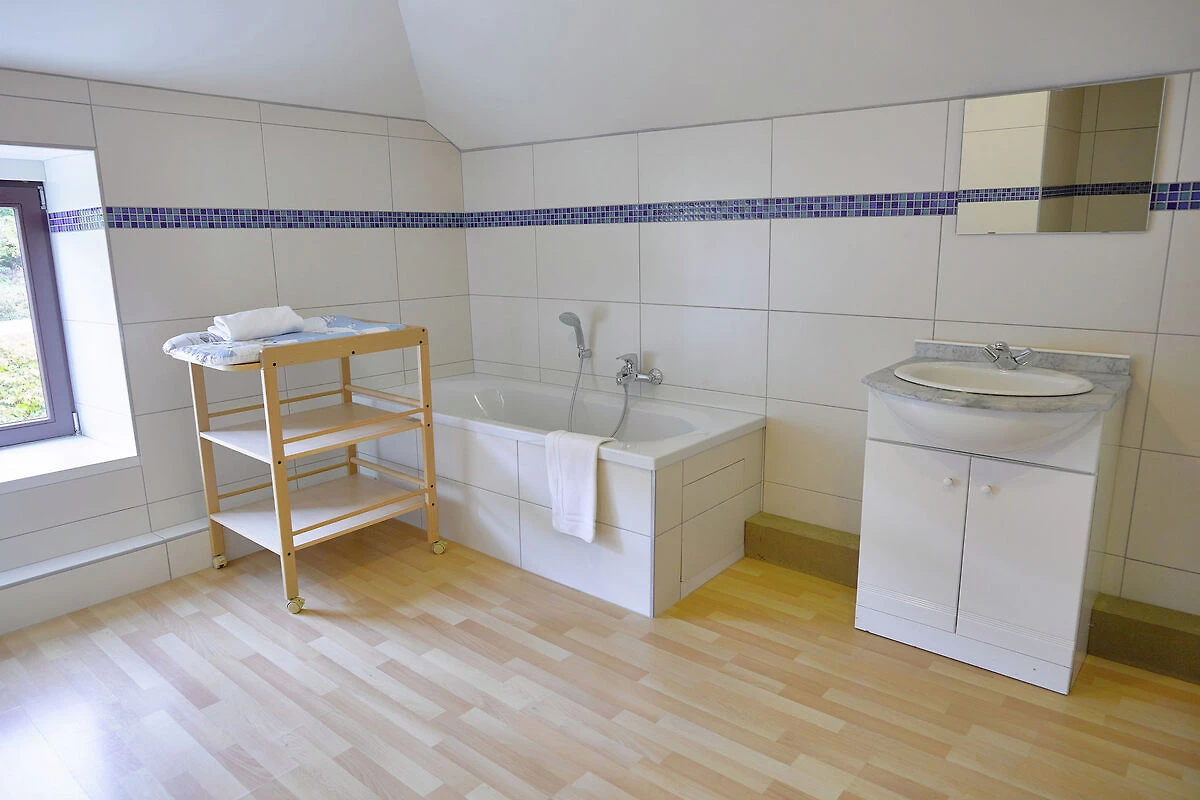 In der 1. Etage: (Schlafzimmer mit Badezimmer(2x Einzelbett, Etagenbett, Badewanne, Waschbecken, Toilette), Schlafzimmer mit Badezimmer(Doppelbett, Dusche, Waschbecken, Toilette), Schlafzimmer mit Badezimmer(Doppelbett, Dusche, Waschbecken), Schlafzimmer mit Badezimmer(Doppelbett, Dusche, Waschbecken, Toilette), Schlafzimmer mit Badezimmer(2x Einzelbett, Dusche, Waschbecken), Schlafzimmer mit Badezimmer(Doppelbett, Dusche, Waschbecken, Toilette), 2x Toilette)