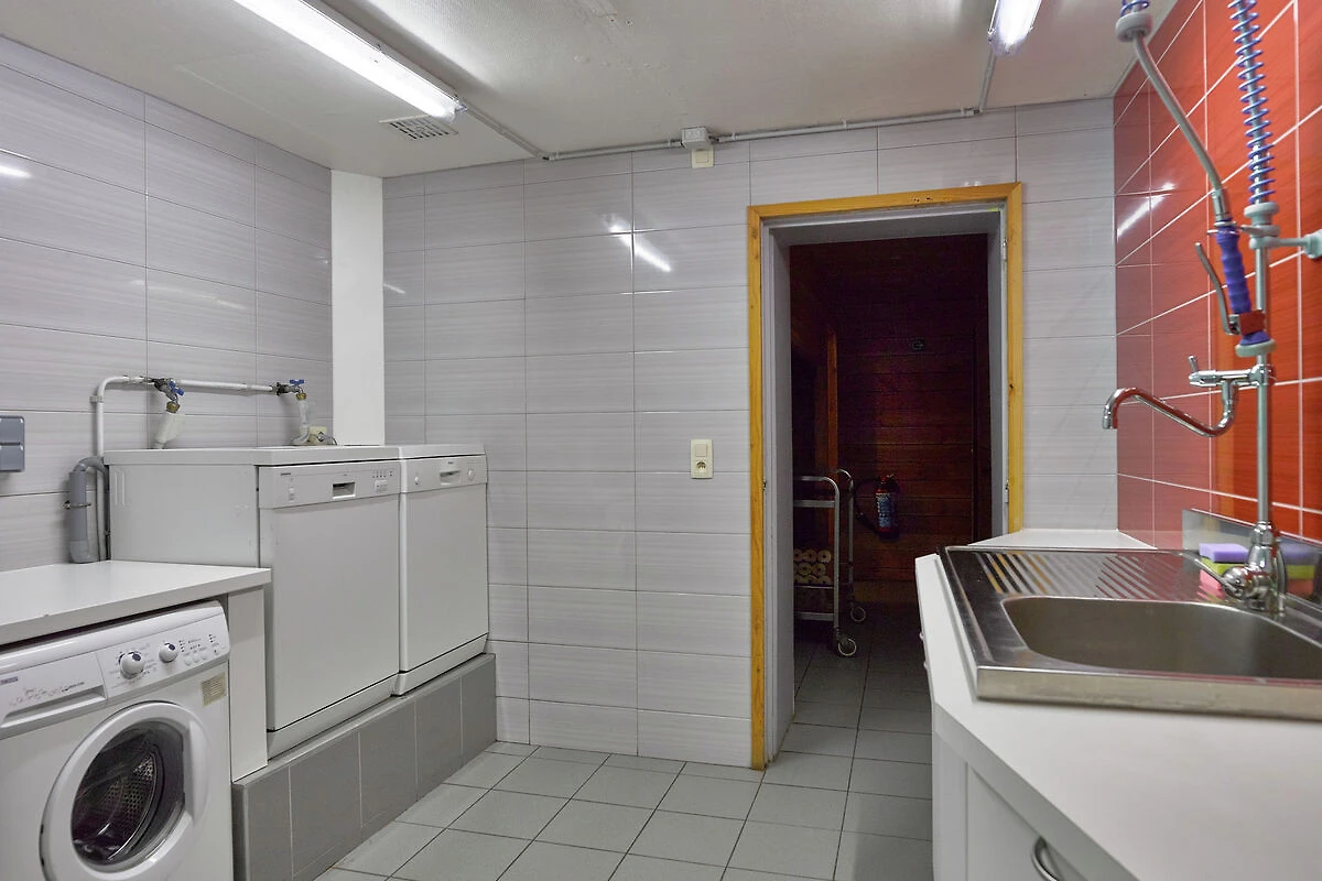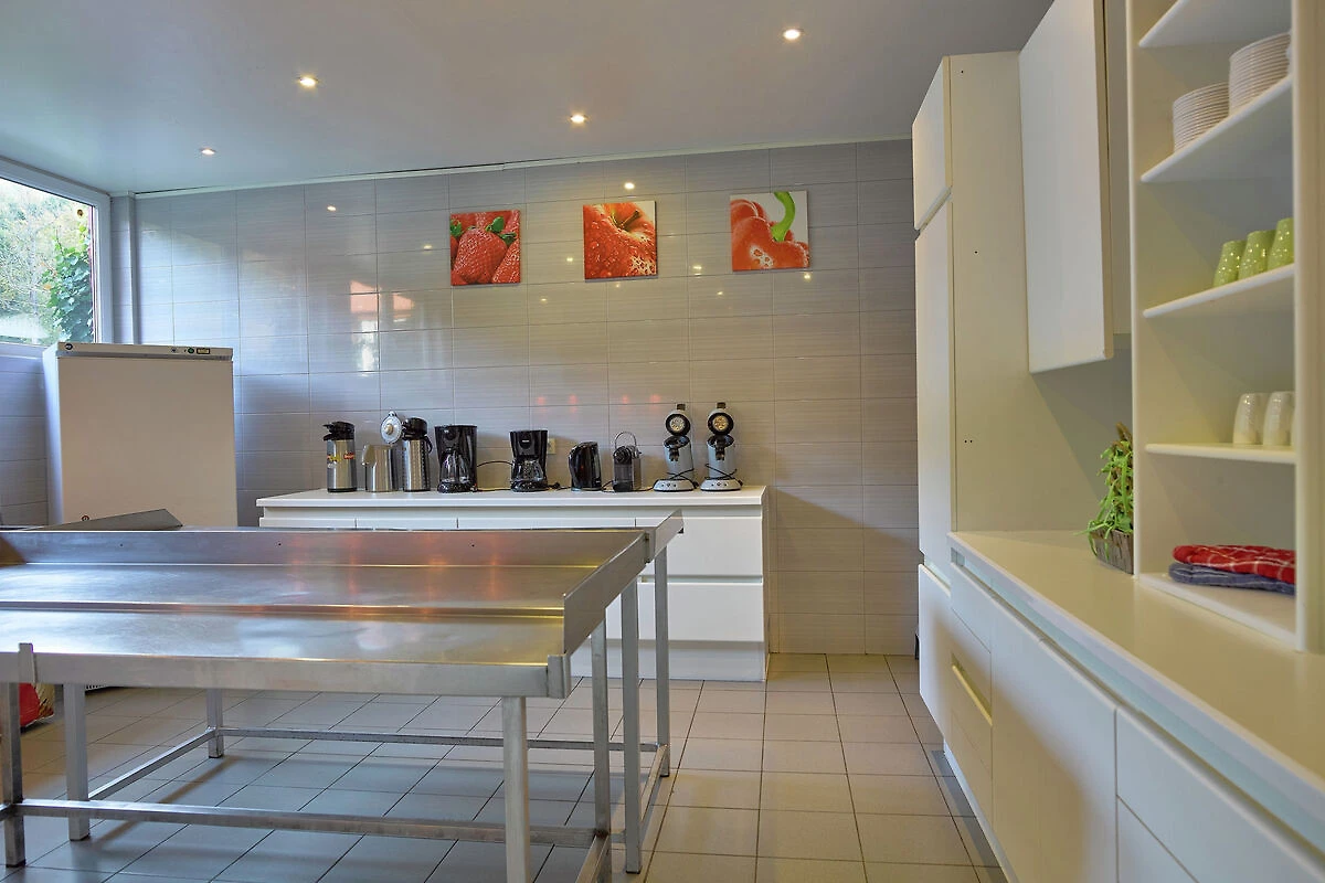 Parterre: (Eingangshalle, Wohnzimmer(TV(Satellit), Ofen(Holz), DVD-Spieler, Radio, CD-Spieler, Billard), Aufenthaltsraum(Ofen(Gas)), Esszimmer(Esstisch(30 Personen)), Küche(Kochherd(elektrisch), Kaffeemaschine(Filter), 2x Backofen(Grillofen), Mikrowelle, 2x Spülmaschine, Kühlschrank, Tiefkühlschrank, Hochstuhl), Toilette(Waschbecken), Toilette(Waschbecken), Spielzimmer(Tischfußball), Freizeitraum(Bar, 2x Kühlschrank))