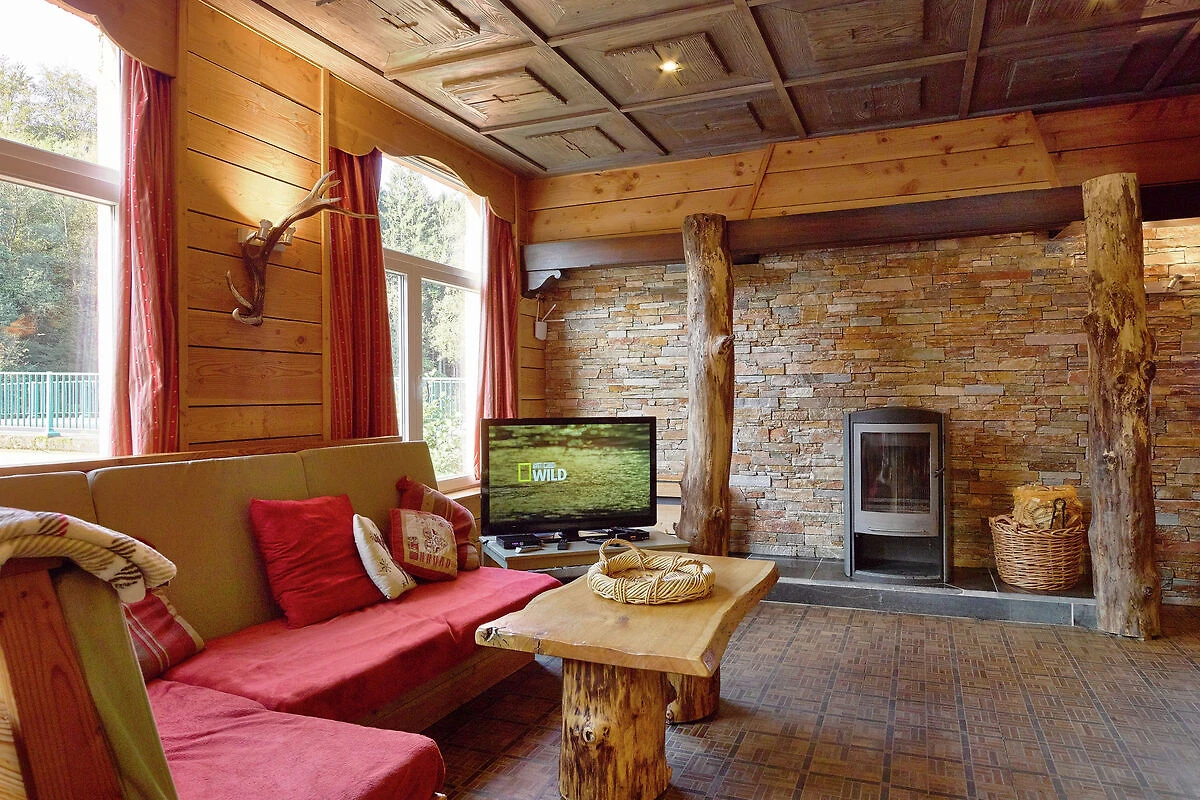 Die Wohnung liegt in einer ruhigen Umgebung in der Nähe einer Eisenbahnlinie, die nicht häufig befahren ist. Die Wohnung strahlt eine gemütliche und warme Atmosphäre aus, unter anderem durch die Einrichtung aus Holz. Die Kinder vergnügen sich in der Spielecke, während Sie eine Runde Billard, Airhockey, Tischfußball oder eine Runde Bowling spielen. Das überdachte Schwimmbad mit Sauna befindet sich in einem getrennten Nebengebäude im Garten ungefähr 20 Meter vom Haus entfernt. Der Garten in Richtung Süden ist umzäunt und grenzt an den Fluss Amblève. Abends organisieren Sie hier einen gemütlichen Grillabend für die ganze Familie.