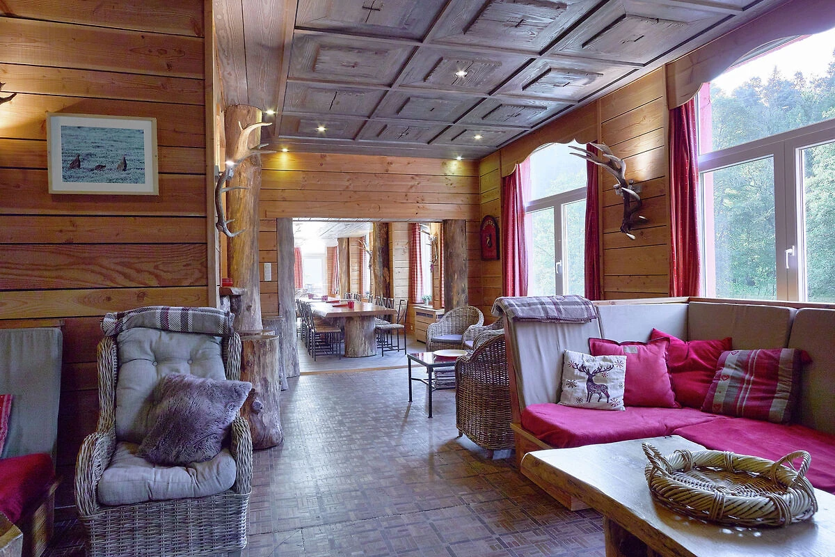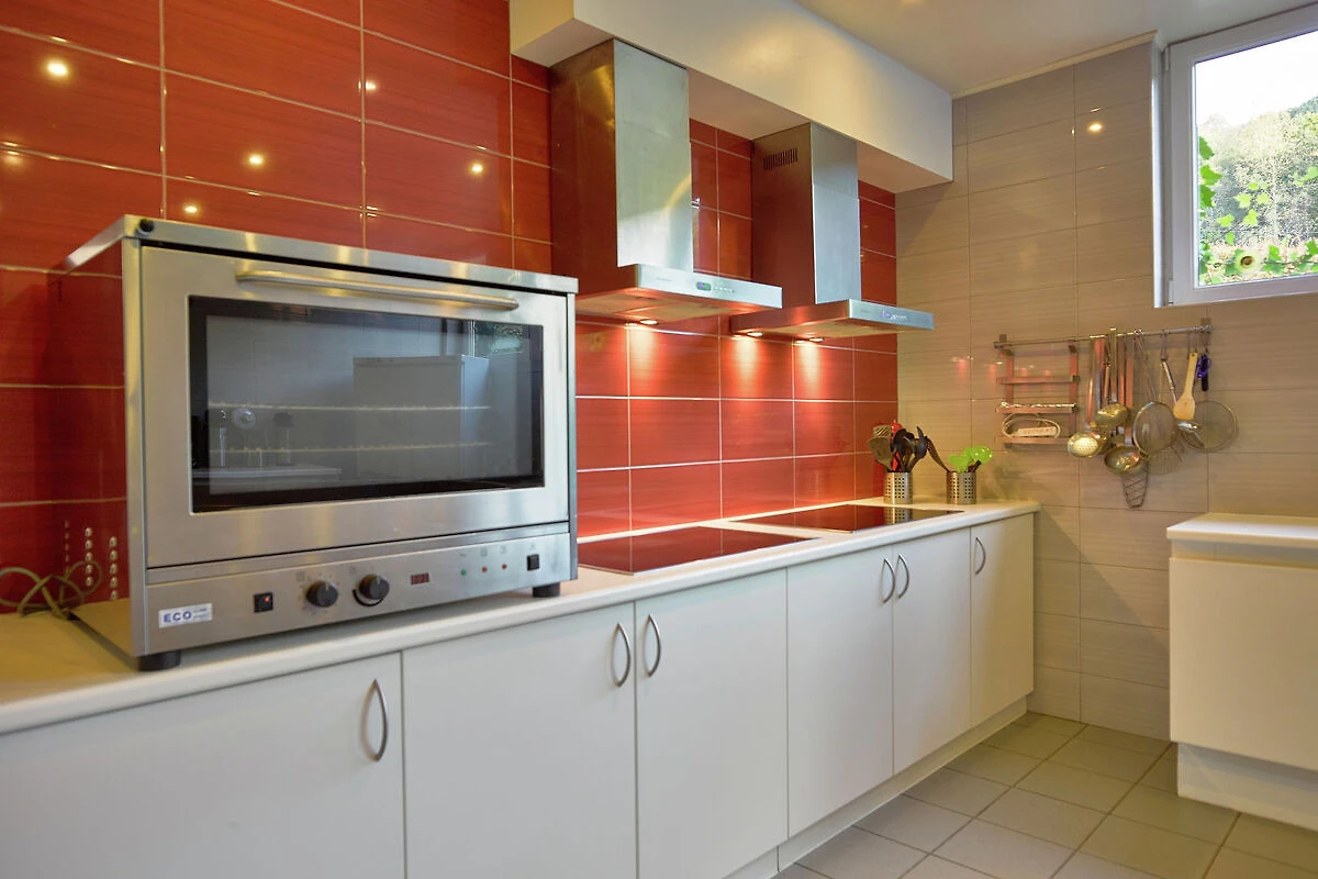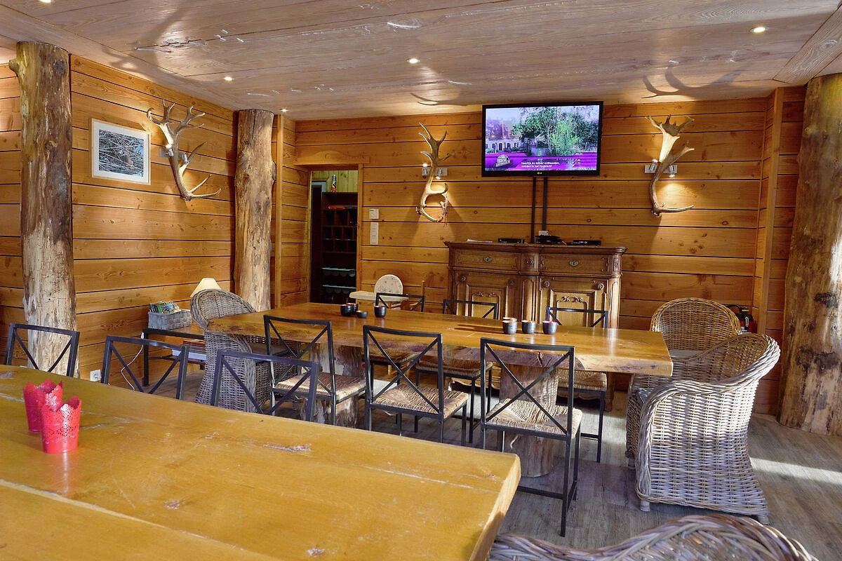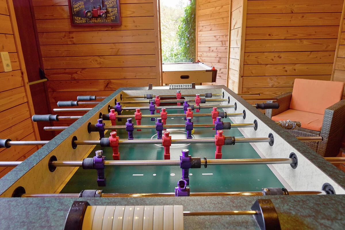 Es gibt diverse Wohnräume mit Holz- und Gasofen, Satelliten-TV, DVD, Internet und eine Bar mit zwei Kühlschränken. Die Spielecke für Kinder ist mit Airhockey und Kicker ausgestattet. Außerdem ist ein Billardtisch vorhanden. Die vollständig ausgestattete Küche wurde für große Familiengruppen gebaut, sodass am Esstisch gut 20 Personen Platz nehmen können. Der Garten im Süden ist umzäunt und grenzt an den Fluss Amel. Außerdem sind ein Grill und ein Boules-Platz vorhanden. Das Hallenbad mit Sauna befindet sich in einem separaten Nebengebäude im Garten nah am Haus.