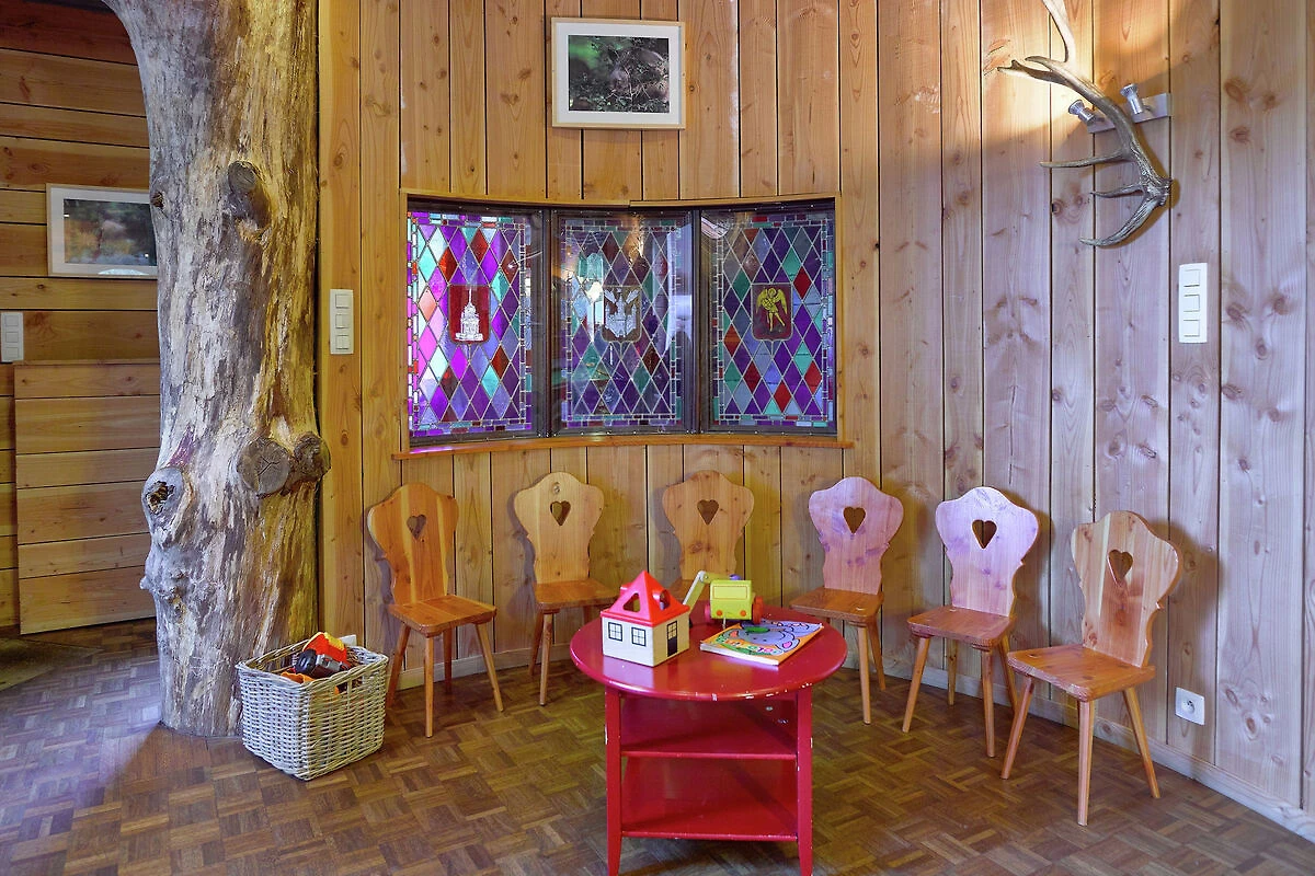 Parterre: (Eingangshalle, Aufenthaltsraum(TV(Satellit), Ofen(Holz), DVD-Spieler, Radio, CD-Spieler, Billard), Aufenthaltsraum(Ofen(Gas)), Esszimmer(Esstisch(20 Personen)), Küche(Kochherd(8 Kochplatten, elektrisch), Kaffeemaschine(Filter, pads), 2x Backofen(Grillofen), Mikrowelle, 2x Spülmaschine, 3x Kühlschrank, Kühlschrank(amerikaner), Tiefkühlschrank, 2x Hochstuhl), Toilette, Toilette, Spielzimmer(Tischfußball), Freizeitraum(Bar, 2x Kühlschrank), TV(flatscreen))