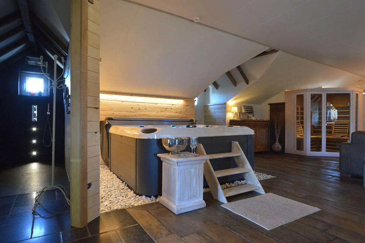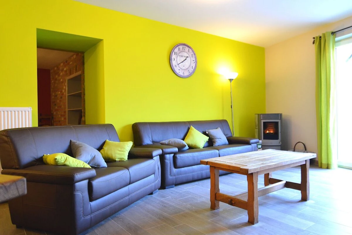 Das Ferienhaus im Erdgeschoss verfügt über ein großes Wohnzimmer mit einer gemütlichen Kaminecke zum Essen und Entspannen. Verbringen Sie entspannte Stunden mit einer Partie Billard. Am Ende des Gartens plätschert ein Bach, und hinter dem Haus erstreckt sich ein Waldstück – perfekt, um die Natur zu erleben. Auf Anfrage stellen wir Ihnen gerne ein Kinderbett und einen Hochstuhl zur Verfügung. Parkplätze sind vorhanden.