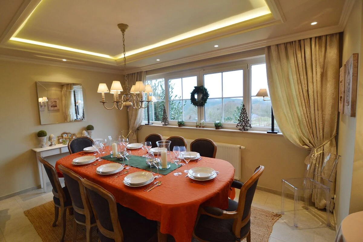 Im Oktober habe ich mit der Familie meines Mannes (insgesamt 6 Personen) Diese schöne Villa für eine Woche gemietet. Es ist eine schöne Luxus-Villa. Bis ins kleinste Detail dieses luxuriöse bemerkbar. So hat das Haus im ganzen Kraft verstellbare Strahler, die wunderbare Licht. Es ist eine große Erleichterung zur Terrasse. Die Sauna ist sehr geräumig und ein großes Plus. Die Küche ist auch sehr luxuriös und verfügt über alle notwendigen Geräte. Die Zimmer sind sehr geräumig und das Schlafzimmer verfügt über einen Arbeitsbereich. Die Betten sind in Ordnung. Die Lage der Villa ist groß. Eine schöne Aussicht auf das Tal von einer schönen großen Terrasse. Es gibt genügend Parkplätze vor dem Haus. Carrefour und Delhaize Supermärkte in der Nähe. Der Manager ist sehr freundlich und spricht Niederländisch. Kurz vor der Ankunft wir uns gerade angerufen zu informieren, welche Zeit wir ankommen würden. Ich kann nicht von irgendwelchen negativen denken.