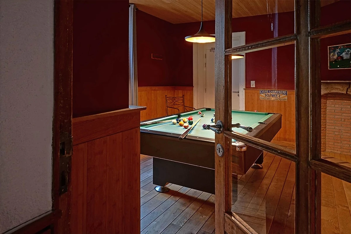 Das geräumige Haus ist mit allen Annehmlichkeiten ausgestattet. Die meisten Zimmer haben ein eigenes Bad und auf dem Gelände gibt es ein Poolhaus mit türkischem Bad, Sauna und Swimmingpool. Das Schwimmbad ist komplett überdacht, beheizt und privat. Im Außenbereich finden Sie einen Parkplatz, eine Terrasse, einen Garten und einen Grill. Für Kinder gibt es Spielgeräte und der Aufenthaltsraum verfügt über eine Bar und einen Billardtisch.
