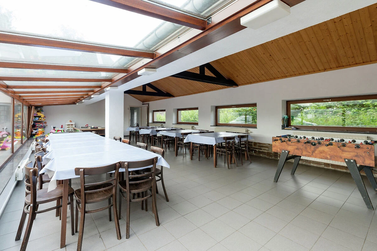 Wir suchten nach einer großen Unterkunft in der Natur, und diese Unterkunft war genau das, was wir suchten. Das Haus ist komplett ausgestattet und die Küche ist groß genug, um für alle zu kochen. Es ist auch sehr schön, dass es draußen viel Platz gibt und dass es viele kleinere Räume gibt, so dass Sie nicht 40 in einem Raum haben. Es ist schwieriger mit öffentlichen Verkehrsmitteln zu erreichen, aber am Ende war sogar das erfolgreich. Alles in allem auf jeden Fall zu empfehlen!