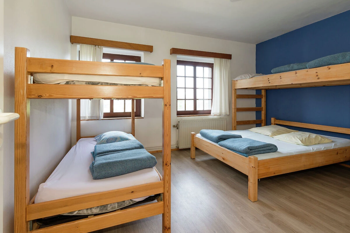 In der 1. Etage: (Schlafzimmer(Hochbett 1 Person , Doppelbett, Waschbecken), Schlafzimmer(Hochbett 1 Person , Doppelbett, Waschbecken), Schlafzimmer(Hochbett 1 Person , Doppelbett, Waschbecken), Schlafzimmer(3x Einzelbett, Etagenbett, Etagenbett, 2x Waschbecken), Schlafzimmer(Hochbett 1 Person , Doppelbett, Etagenbett, Waschbecken), Schlafzimmer(2x Hochbett 1 Person , 2x Doppelbett, Etagenbett, Waschbecken), Durchgangsschlafzimmer(9x Einzelbett, 2x Waschbecken), Badezimmer(Badewanne, Waschbecken, Toilette))