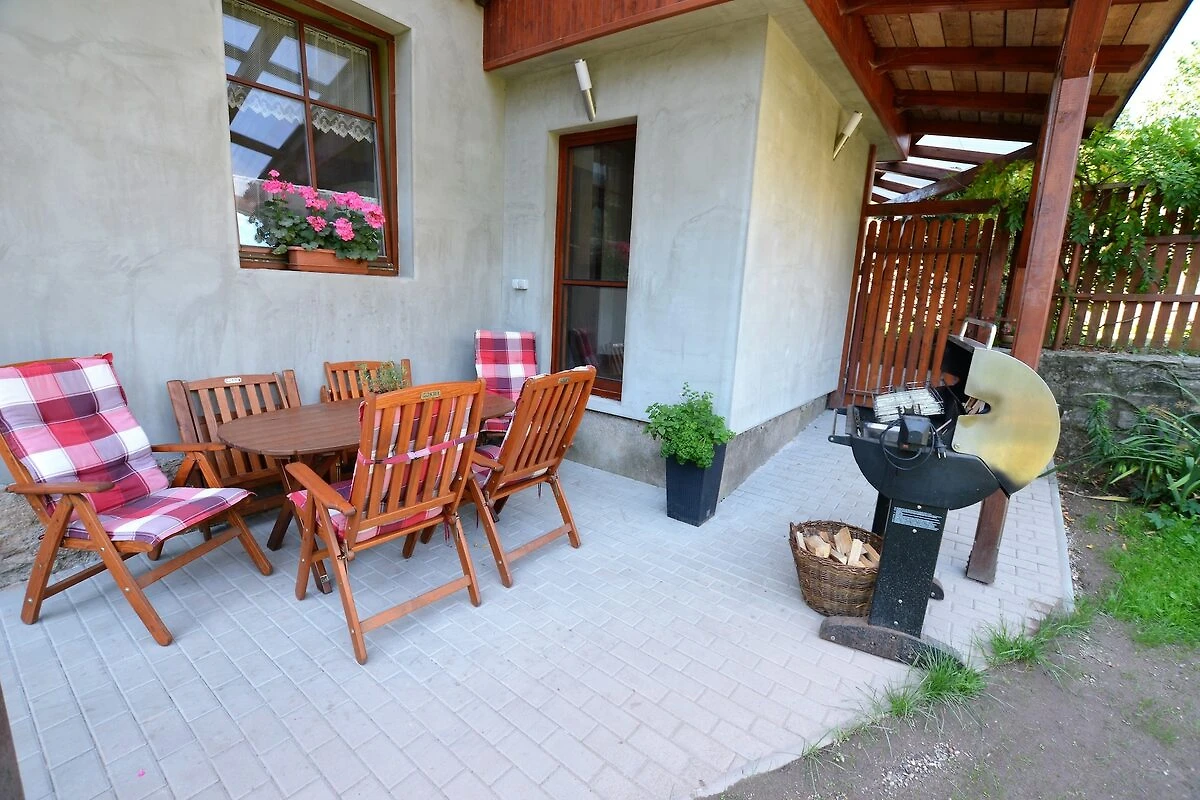 Übernachten Sie in einem einladenden Ferienhaus im Herzen von Černý Důl, das viel Platz für Familien und Freundesgruppen bietet. Mit vier Schlafzimmern, einem großen Wohnbereich und einer gut ausgestatteten Küche lädt das Haus zum Entspannen nach erlebnisreichen Tagen ein. Gäste können sich im privaten Garten treffen, im Freien grillen oder auf der Terrasse entspannen und die umliegende Bergatmosphäre genießen.