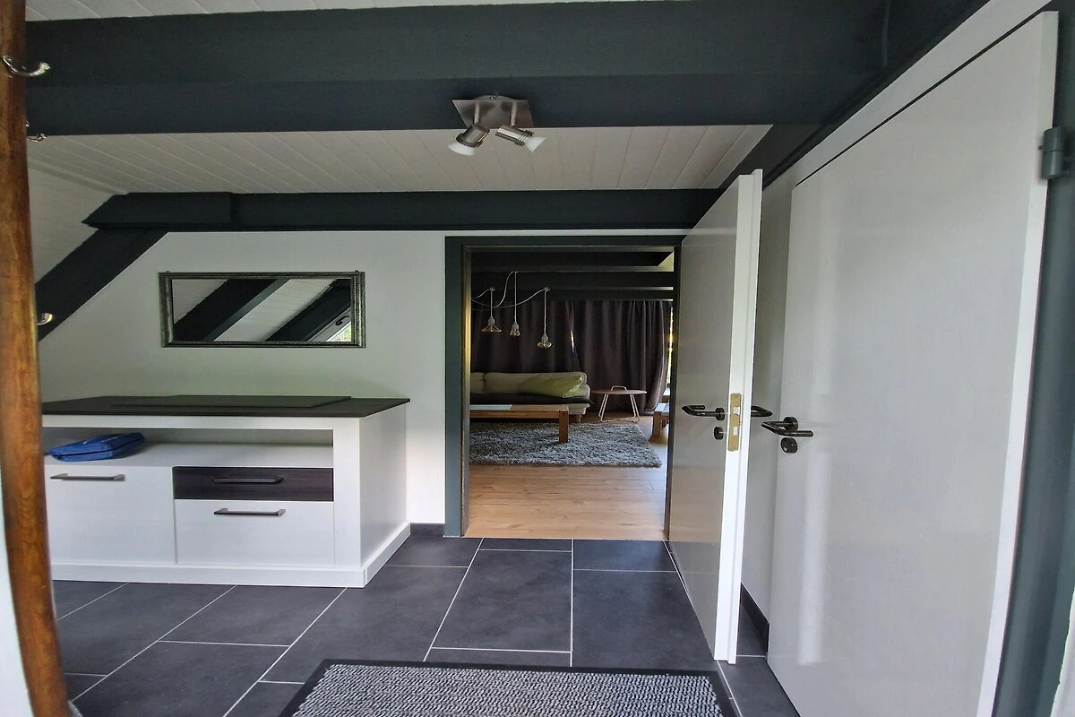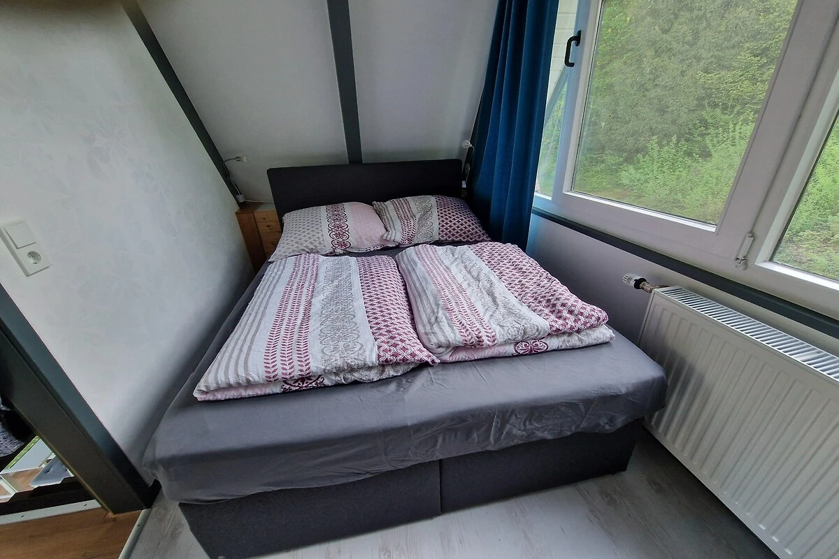 Wir hatten einen guten Aufenthalt in der Hütte. Familie mit 2 Erwachsenen und 3 kleinen Kindern. Auch bei Hitze blieb das Haus relativ kühl, der Blick ist schön grün und es ist herrlich ruhig. Vielleicht etwas zu ruhig für junge Leute, denn selbst im Sommer 2022 gab es kein WLAN, kein 4G und auch keine Telefonabdeckung ab Haus. An der Rezeption bekommt man ein Passwort für das W-Lan, damit man sich dort eine Weile hinsetzen kann (es gibt auch den einzigen Spielplatz im Park) und das Internet nutzen kann.Die Parkverwaltung ist freundlich und hilfsbereit. Unsere Dunstabzugshaube stank nach Zigarettenrauch, also haben wir sie überprüfen lassen. Dafür wurde ein neuer Filter bestellt, wir haben in unserem Urlaub keine Dunstabzugshaube benutzt und bei offenem Fenster gekocht. Glücklicherweise hatten wir gutes Wetter.An der Rezeption befindet sich ein 1,30 m tiefes Hallenbad, das Sie für 3 Euro pP nutzen können und das zu den gleichen Zeiten wie die Rezeption geöffnet ist (Speicherung am Di und Do nur vormittags, sonntags geschlossen, sonst ganztägig) Wir haben es genossen. Weitere van de omgeving. Grootste Empfehlung für einen Ausflug: Eisenach (die Wartburg). Es ist nützlich zu erwähnen, wie die Aufteilung des Hauses ist: Beim Betreten betritt man eine Halle mit einem Zähler Schrank links und das Badezimmer (Dusche, Toilette, Waschbecken) rechts.Dann kommen Sie um die Ecke in ein großes Wohnzimmer mit einer kleinen offenen Küche.Im Wohnzimmer gibt es eine Treppe, die zu einem kleinen Treppenabsatz führt ( < 1 m2) - Achtung: kein Treppengitter, mit Tür links und rechts zu den 2 (!) Schlafzimmern. Im linken Zimmer waren 2 Einzelbetten, Einbauschrank, Stuhl und Spiegel. Hier steht unser Kinder (Kleinkinder) schliefen, das rechte Zimmer hatte auch 2 Einzelbetten, einen Einbauschrank st und 2 Stühle. Dieses Zimmer war geräumig genug, um ein Feldbett aufzustellen. In der Mitte des Raumes befindet sich eine Leiter, die zu einem Dachboden führt. Hier ist eine Doppelmatratze mit zwei Einzelbettdecken
