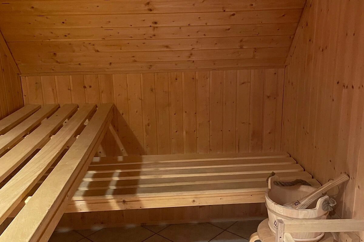 Das dreistöckige Ferienhaus verfügt über sieben Schlafzimmer, drei Badezimmer und mehrere Wohnbereiche mit Sat-TV und Kamin. Die offene Küche ist komplett ausgestattet mit Cerankochfeld, Backofen, Geschirrspüler und Kühl-Gefrierkombination. Gäste können in der privaten Sauna entspannen, auf zwei Terrassen speisen oder im Garten mit Grillplatz relaxen. Zentralheizung mit Gas- und Fußbodenheizung, ein Balkon und zwei Parkplätze sorgen für Komfort und Bequemlichkeit für große Familien oder Gruppen.